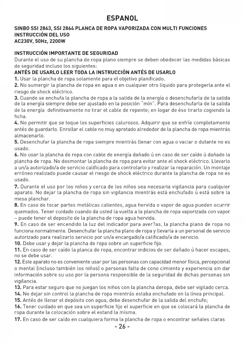 Encuentra gratis el manual del aparato SSI 2863 SINBO en formato PDF.