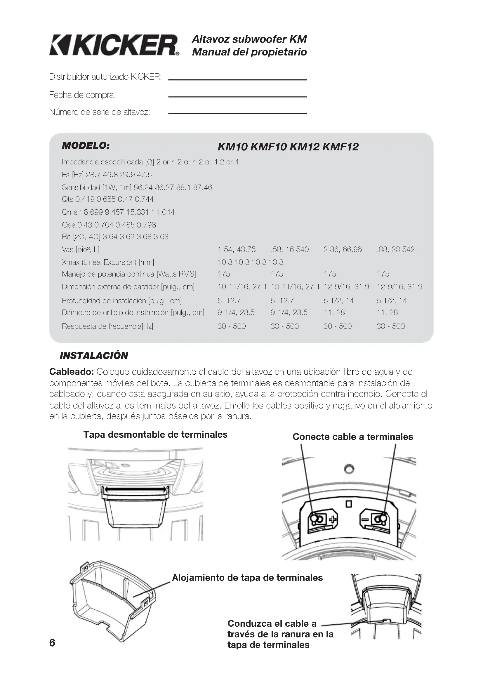 KMF104 - Subwoofer KICKER - Manual de uso y guía de instrucciones gratis