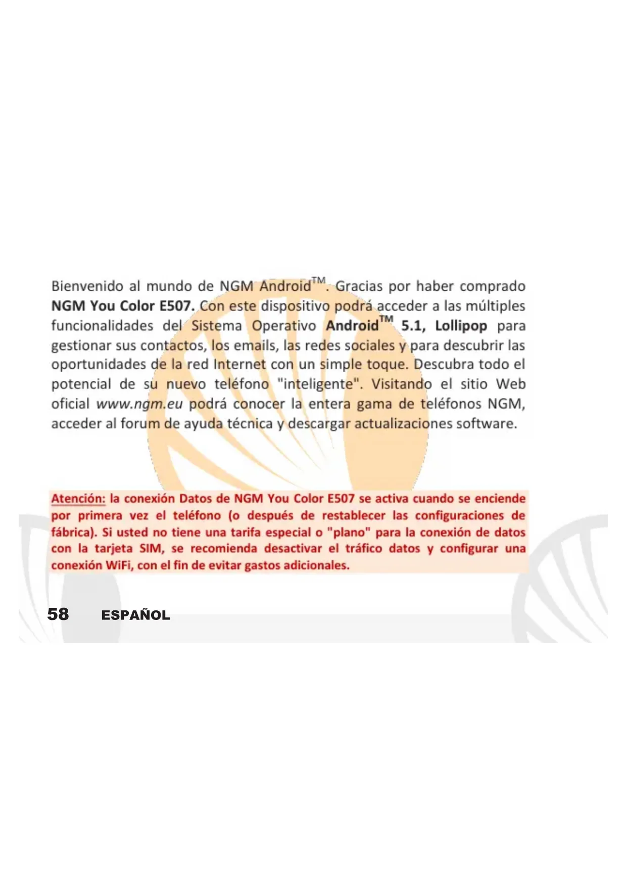 You Color E507 Plus - Teléfono inteligente NGM - Manual de uso y guía de instrucciones gratis