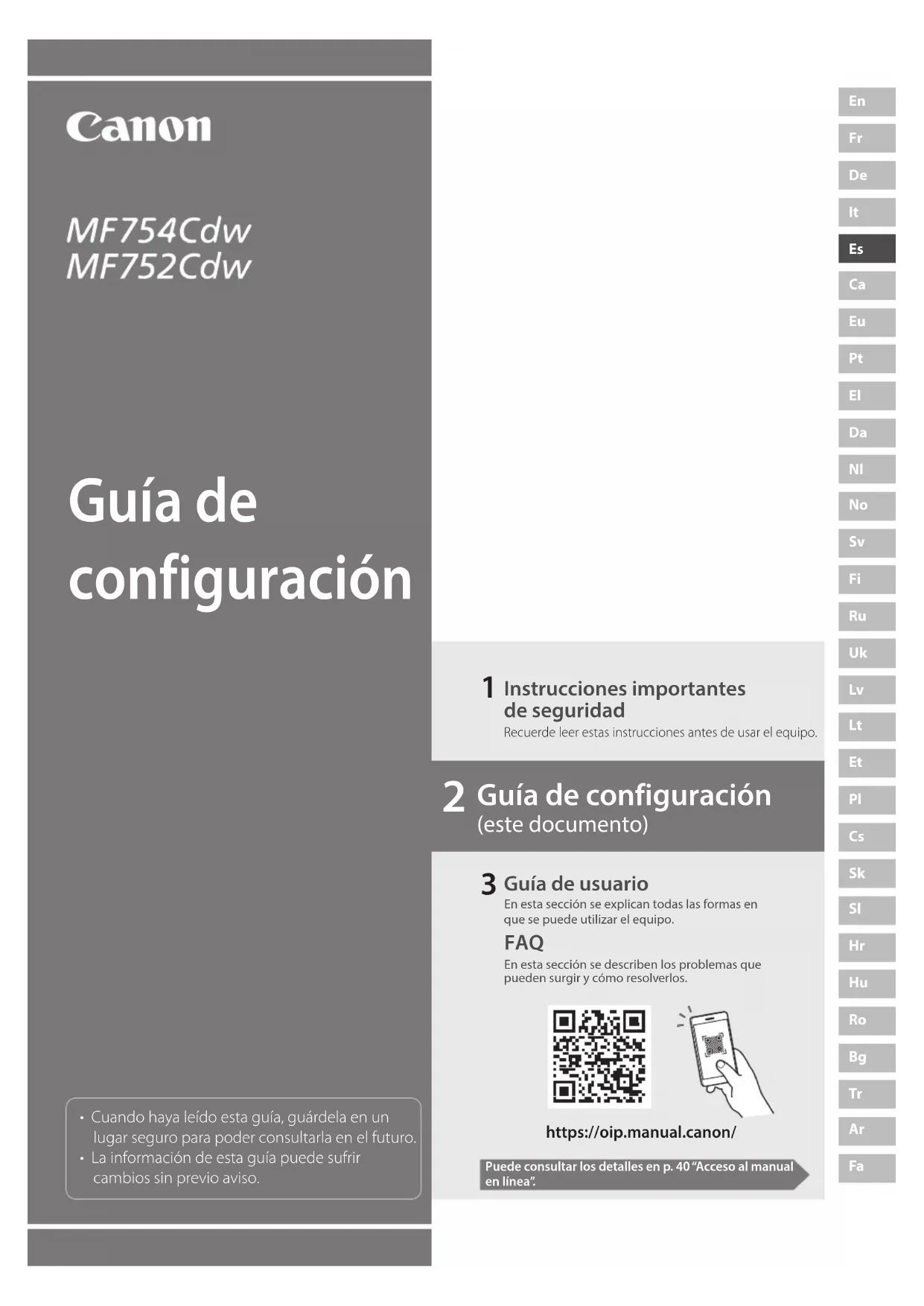 Guía de configuración (este documento) Guía de configuración https://oip.manual.canon/