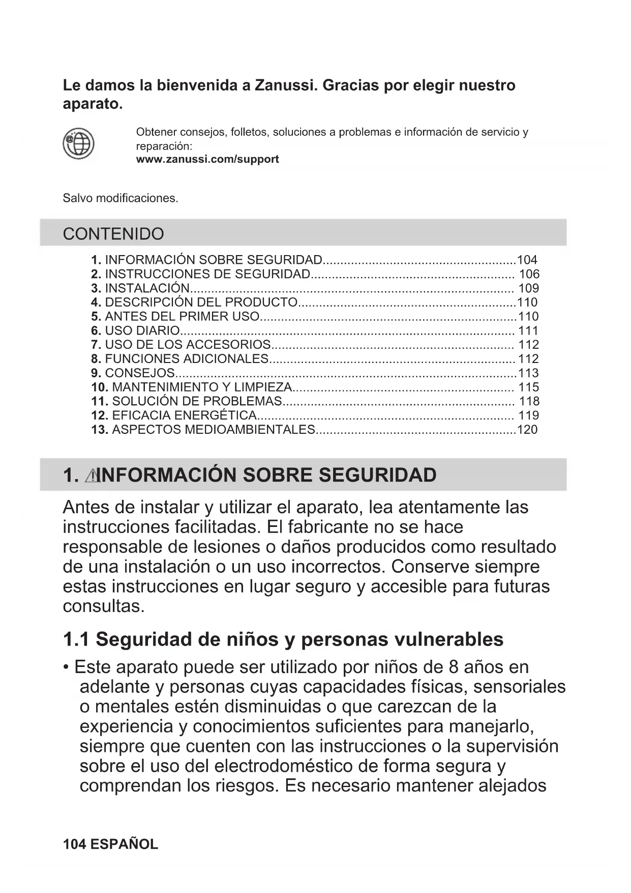 - INFORMACION SOBRE SEGURIDAD 104