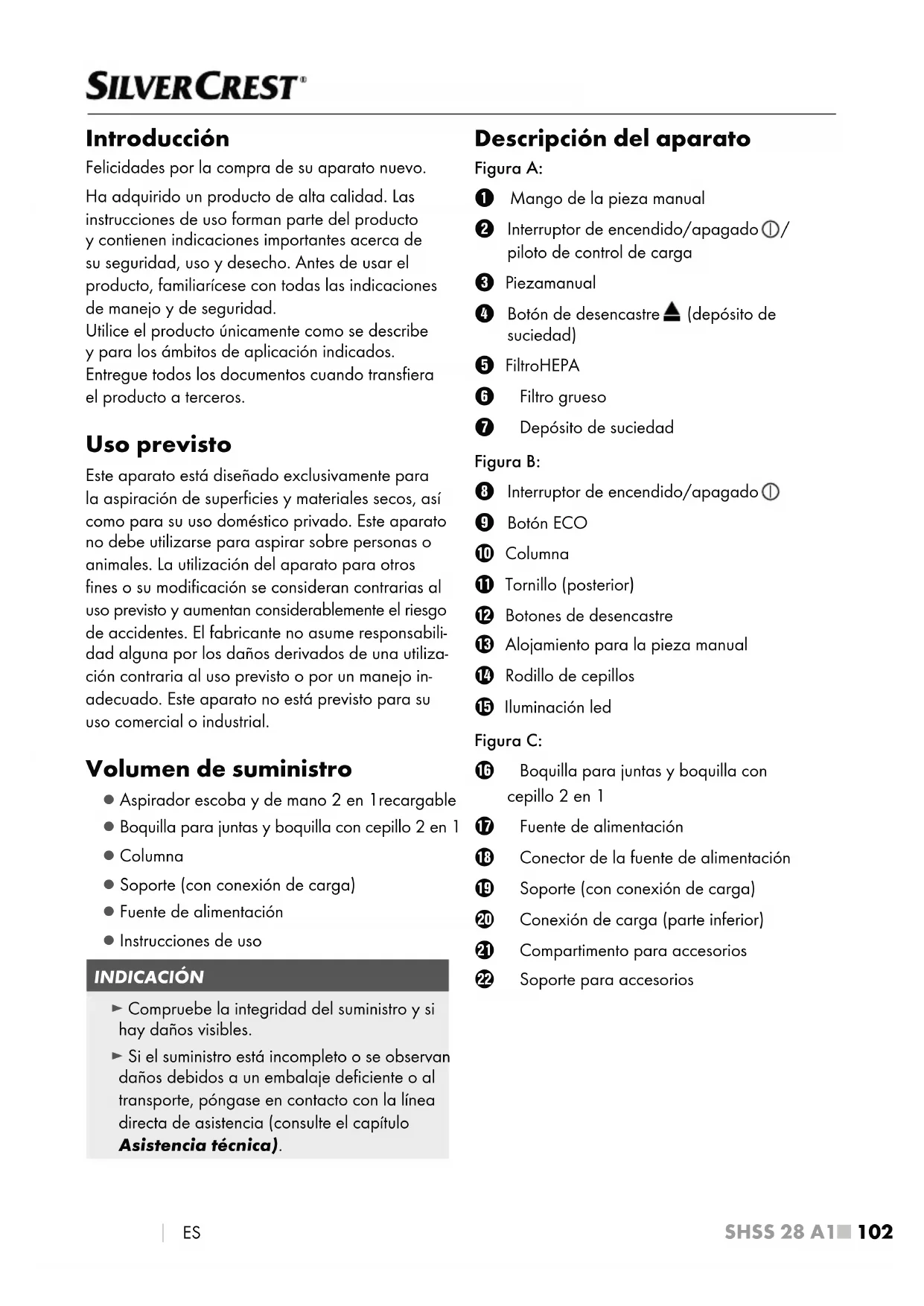 SHSS 28 A1 - Aspiradora SILVERCREST - Manual de uso y guía de instrucciones gratis