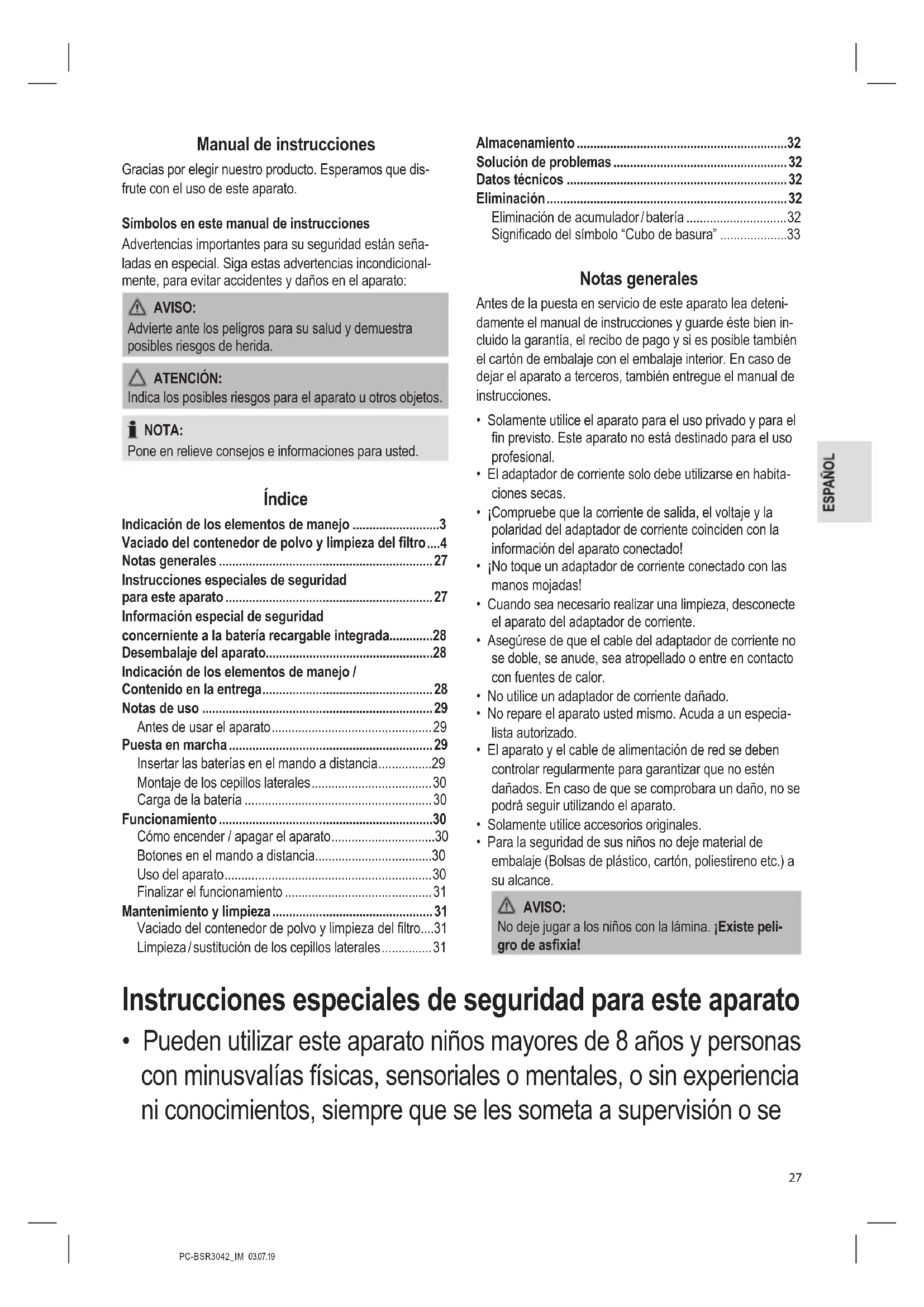 PCBSR 3042 - Robot aspirador ProfiCare - Manual de uso y guía de instrucciones gratis