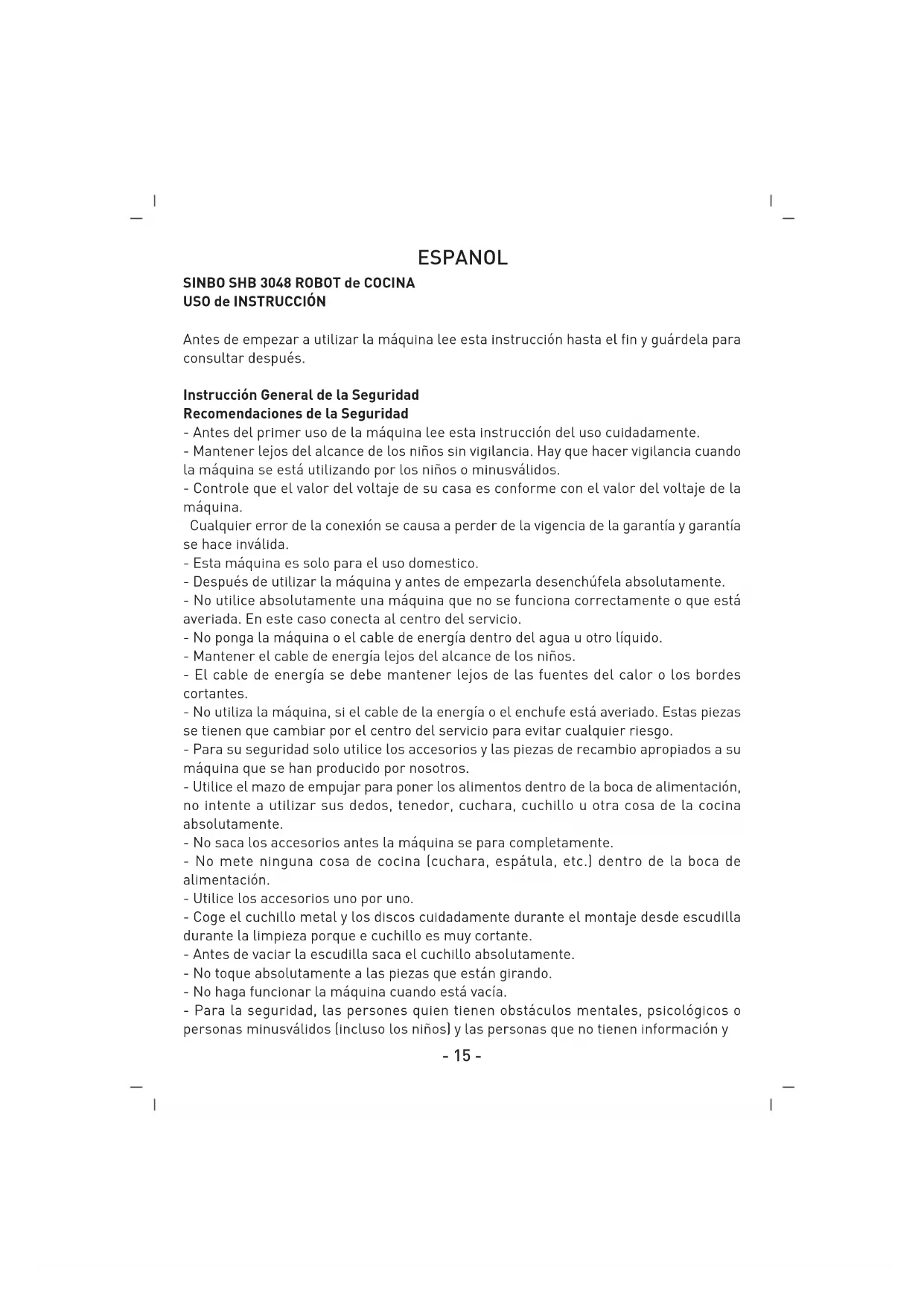 MANUAL DE USUARIO SHB 3048 SINBO