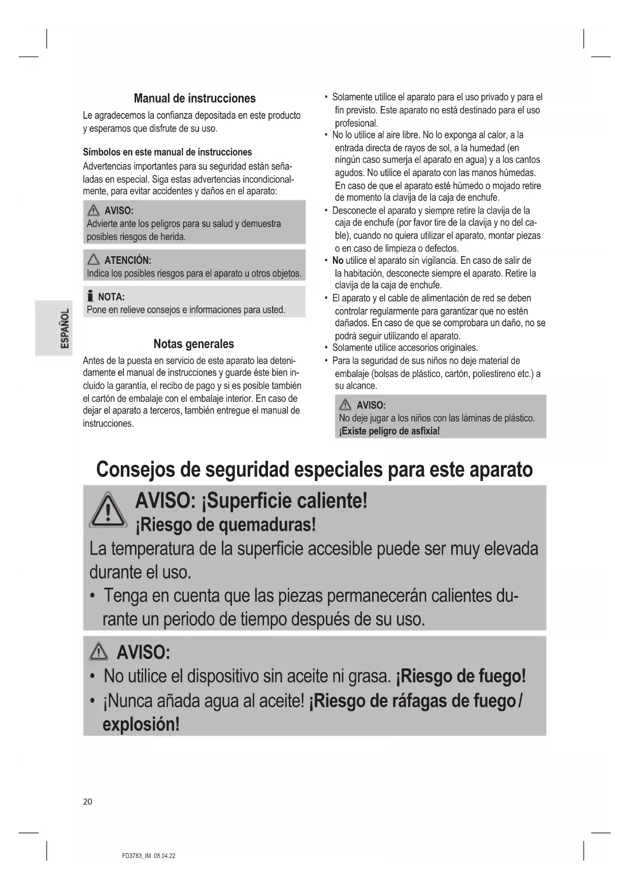 - Los niños no deben jugar con el aparato.FD3783_IM 08.04.22