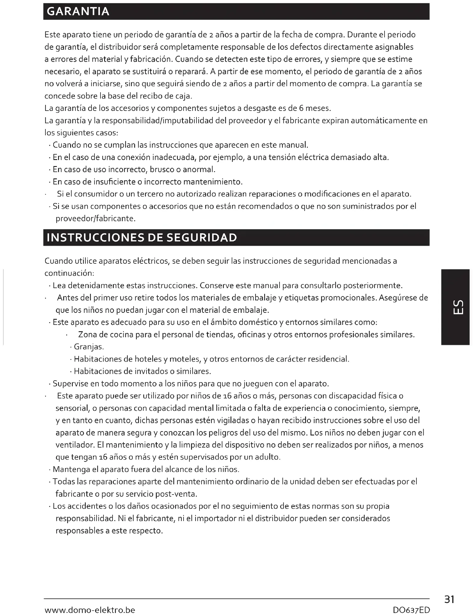 - Los accidentes o los daños ocasionados por el no seguimiento de estas normas son su propia responsabilidad. Ni el fabricante, ni el importador ni el distribuidor pueden ser considerados responsables a este respecto.32 DO637ED