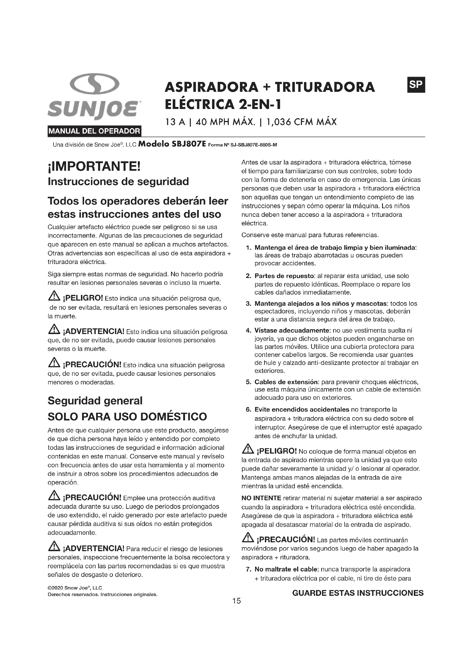 MANUAL DE USUARIO SBJ807E Sun Joe