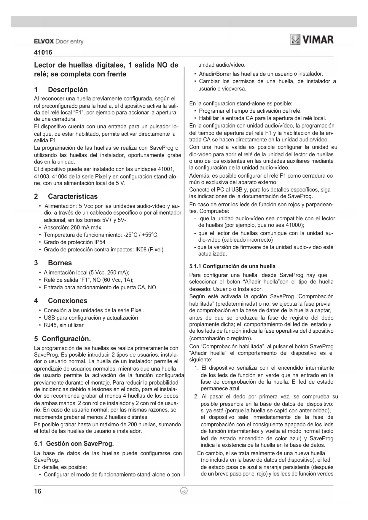 ELVOX 41016 - Lector de huellas dactilares Vimar - Manual de uso y guía de instrucciones gratis