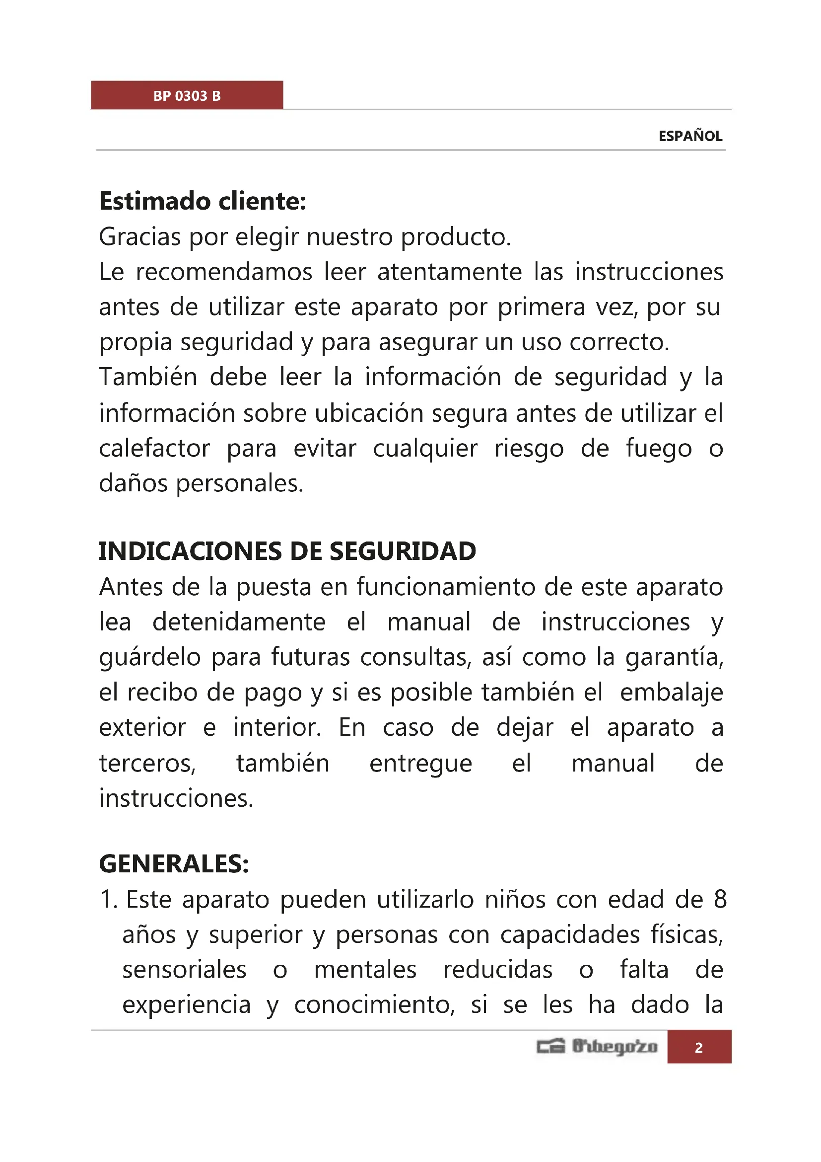 BP 0303 B - Calefacción Orbegozo - Manual de uso y guía de instrucciones gratis
