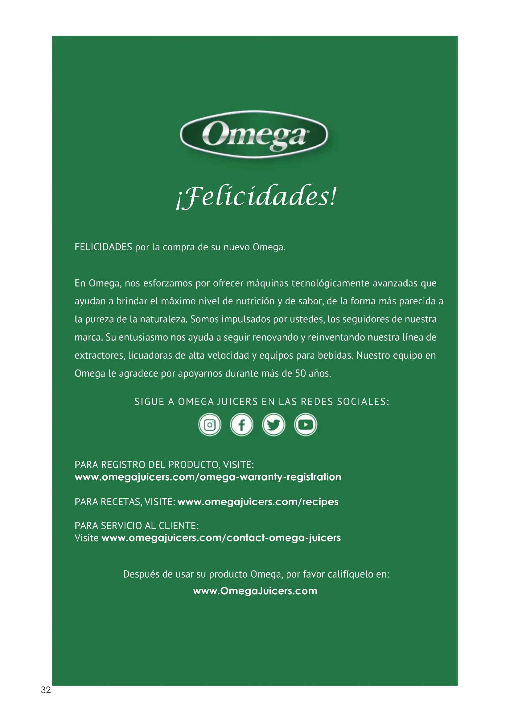 Para obtener piezas de repuesto, llama a servicio al cliente: www.omegajuicers.com/contact-omega-juicers40 OFF