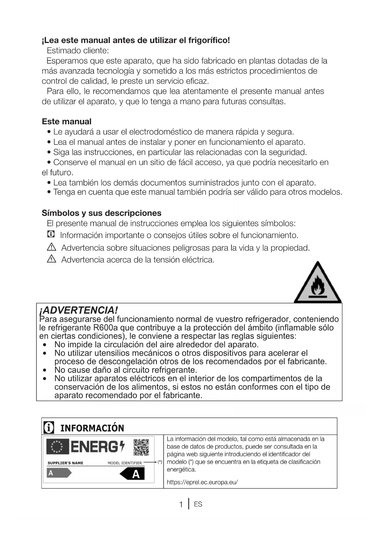 - Este frigorífico está únicamente disnéado para almacenar alimentos. No debe utilizesse para ningúnOTHER propósito.