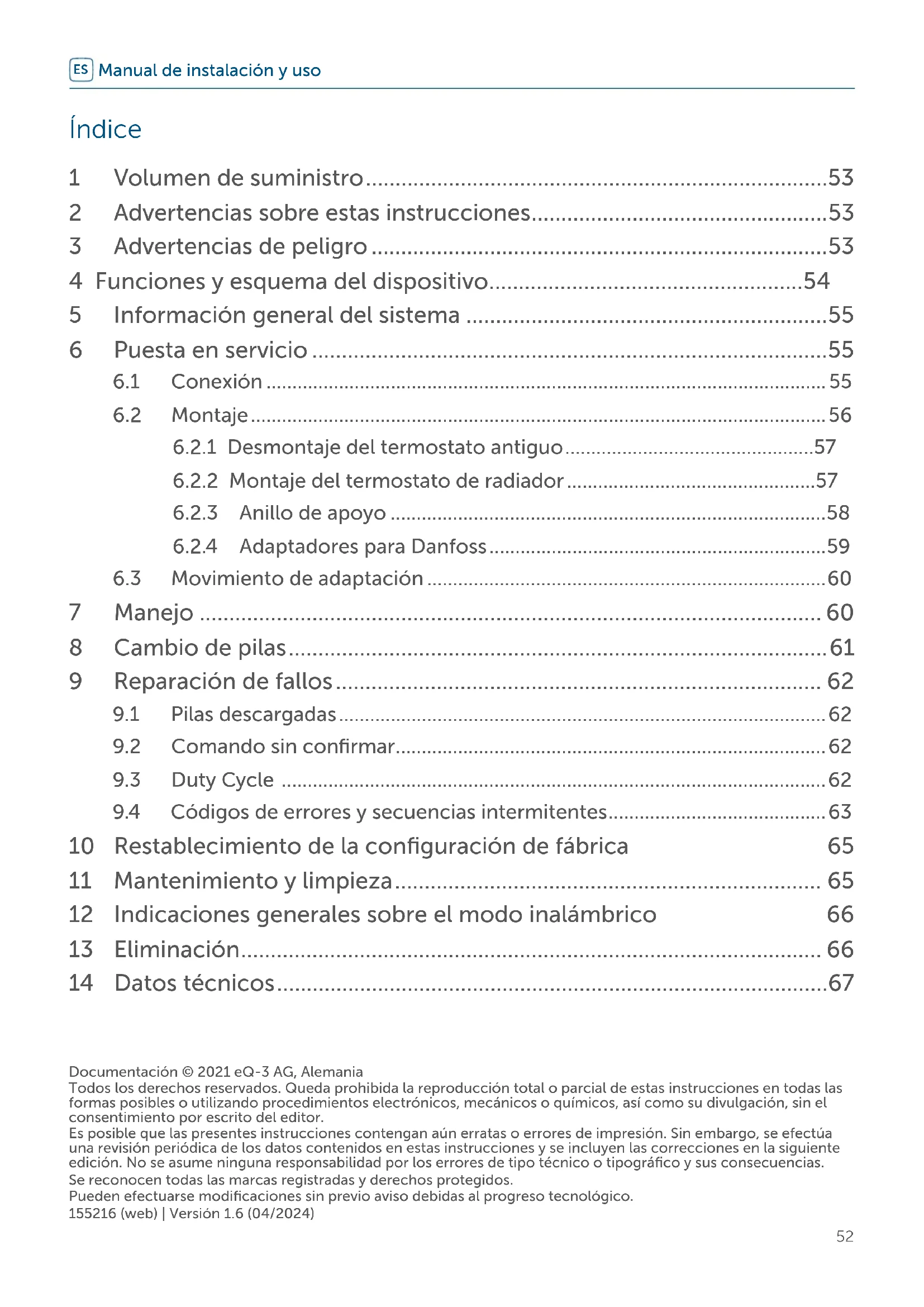 6.2.2 Montaje del termostato de radiador 57