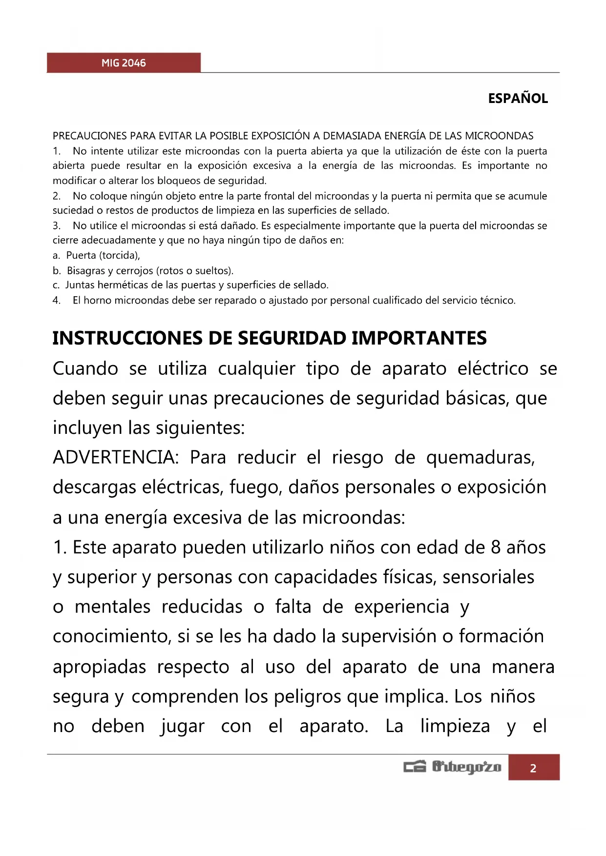 MIG 2046 - Microondas Orbegozo - Manual de uso y guía de instrucciones gratis