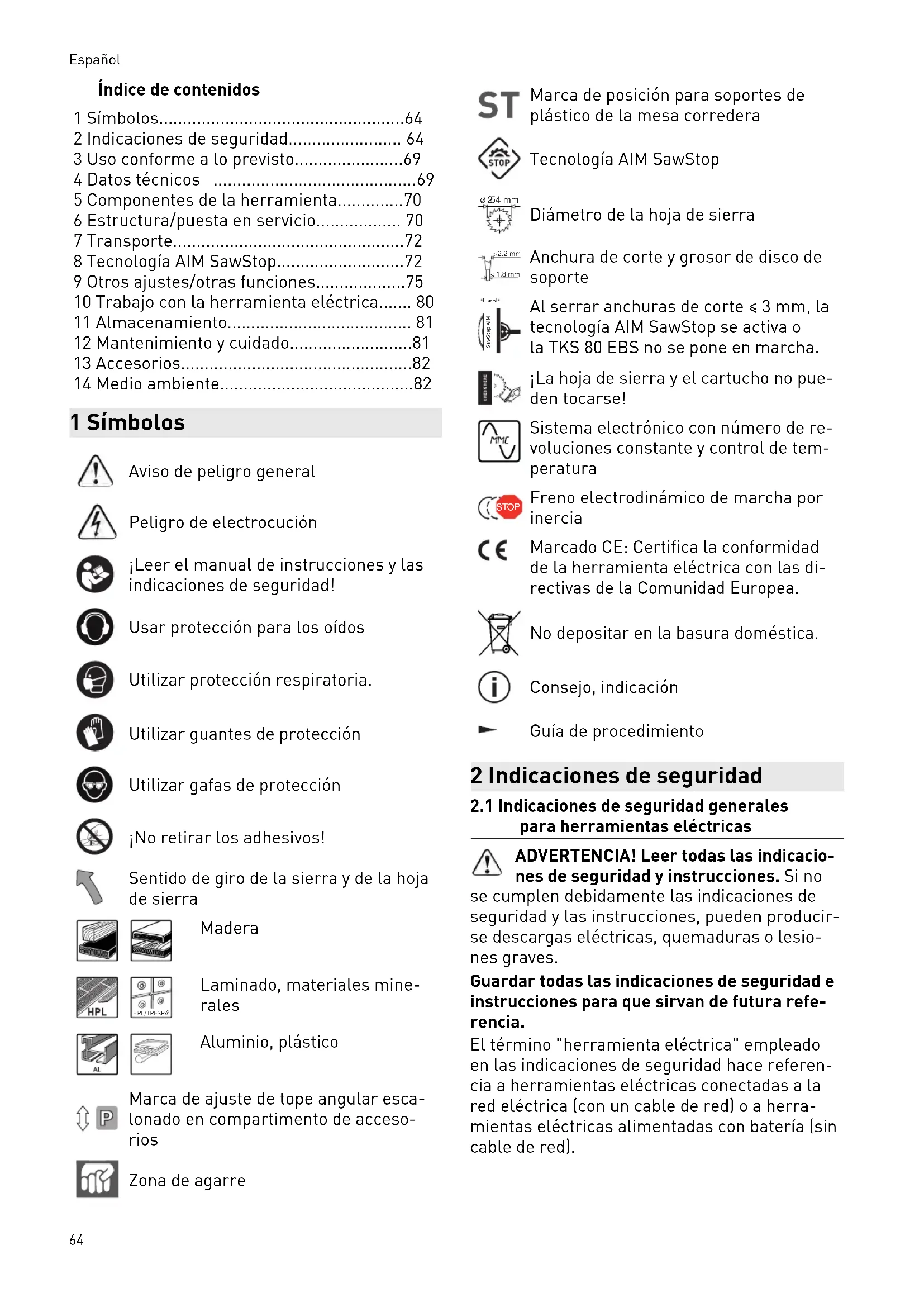 - 8 Tecnología AIM SawStop p. 72