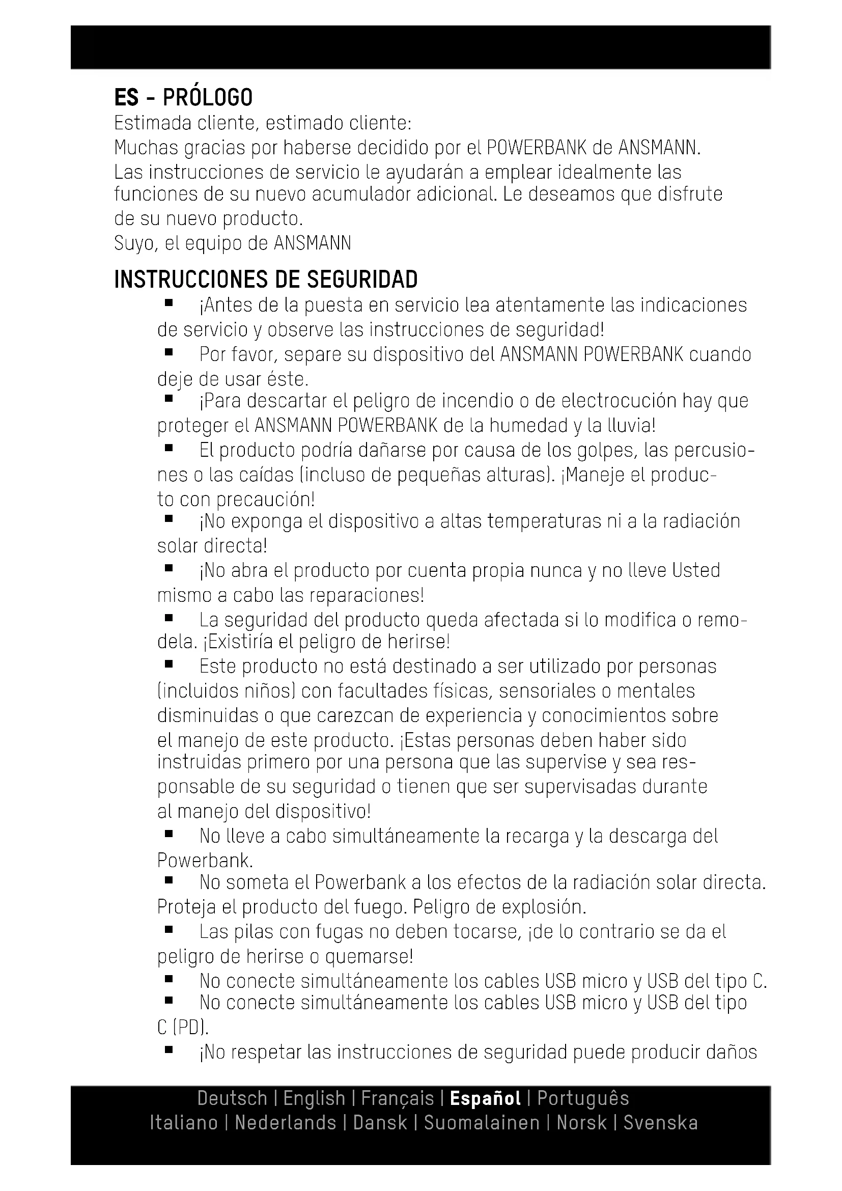 Muchasgracias por haberse decidido por el POWERBANK de ANSMANN.