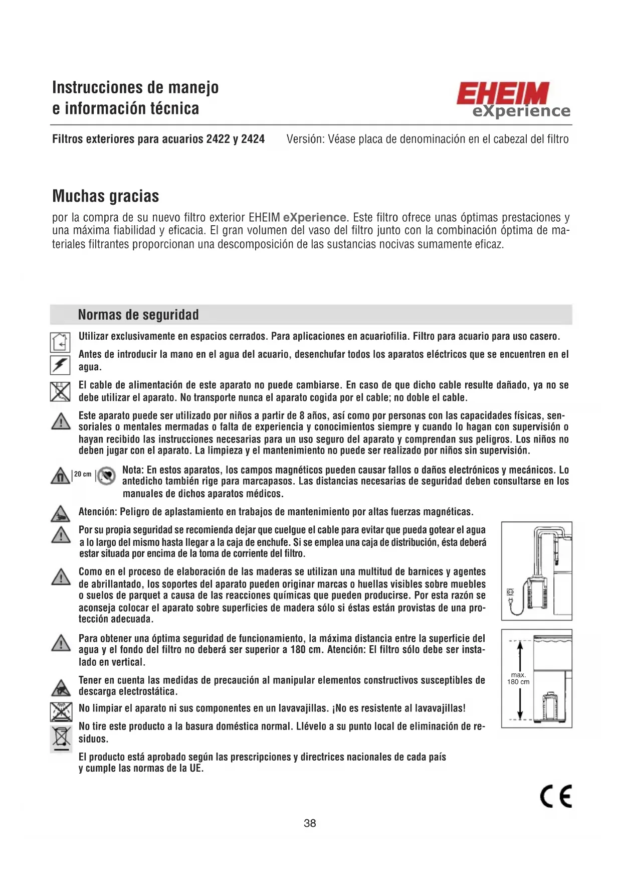 por la compra de su nuevo filtro exterior EHEIM eXperience. Este filtro offre una óptimas prestaciones y una Tmaxa fiabilidad y eficacia. El gran volumen del vaso del filtro jusqu con la combinacion optima de materiales filtrantes proportionsan una descomposacion de las sustancias nocivas sumamente eficaz.