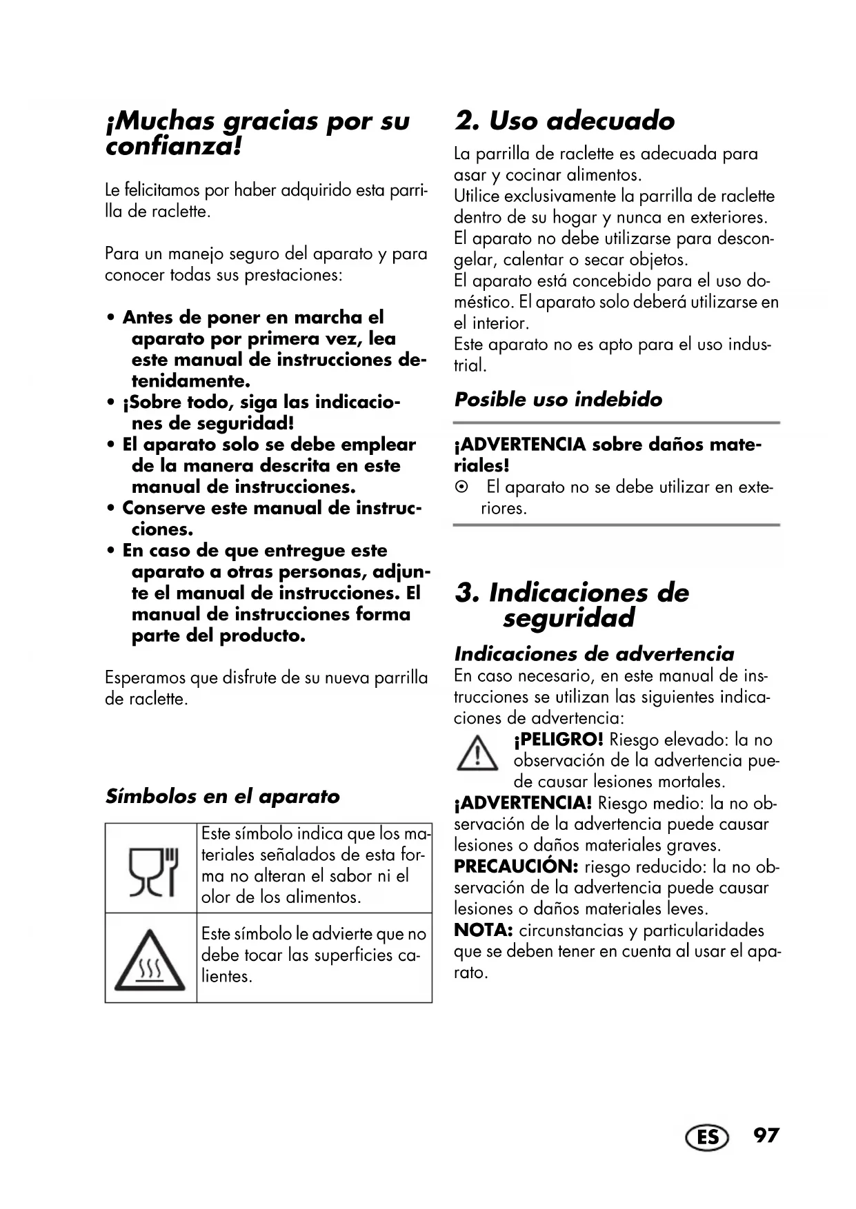 ¡Muchas gracias por su confianza! Le felicitamos por haber adquirido esta parri- lla de raclette. Para un manejo seguro del aparato y para conocer todas sus prestaciones: