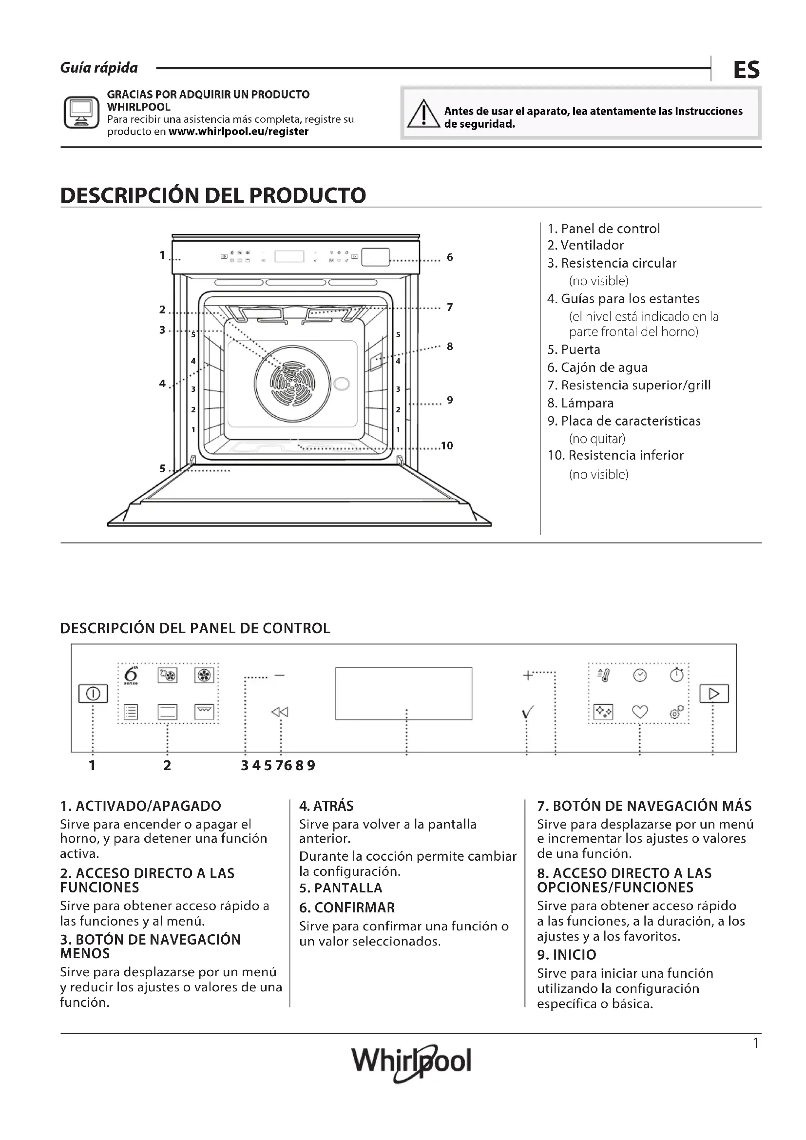 W6 OS4 4S1 H BL - Horno WHIRLPOOL - Manual de uso y guía de instrucciones gratis