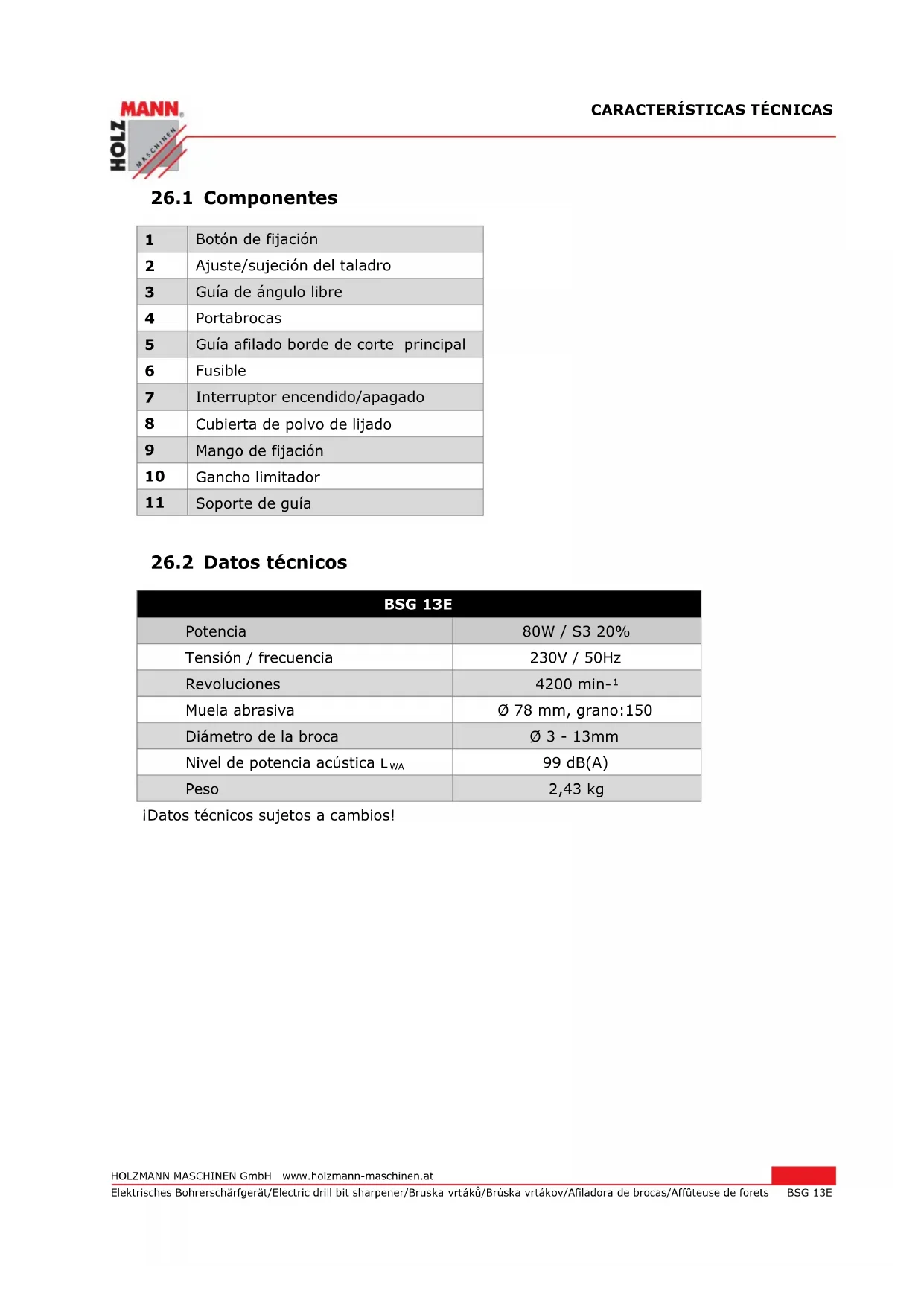 Este manual contiene informaciones e instrucciones importantes para el uso correcto e instalacion de la afiladora de brocas BSG13E.