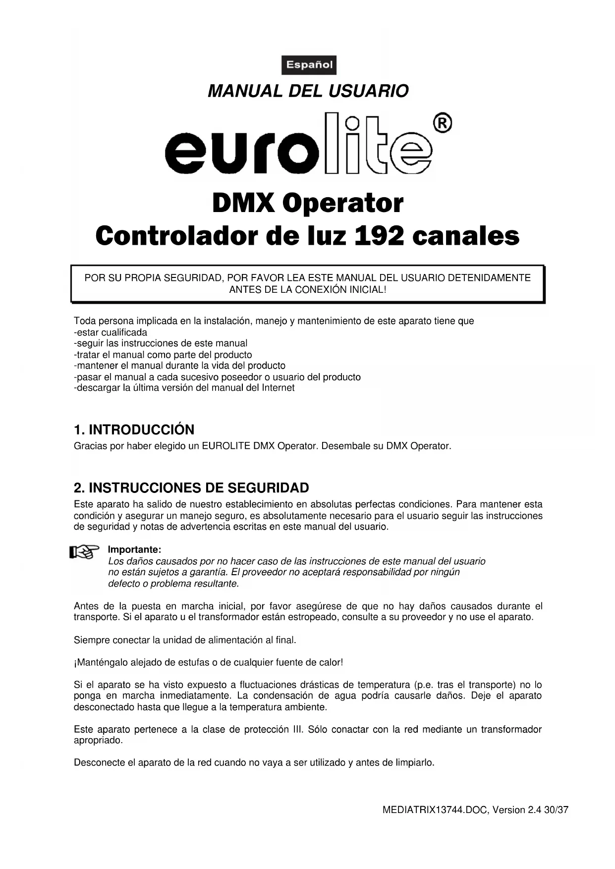 MANUAL DE USUARIO DMX Operator 192 Eurolite