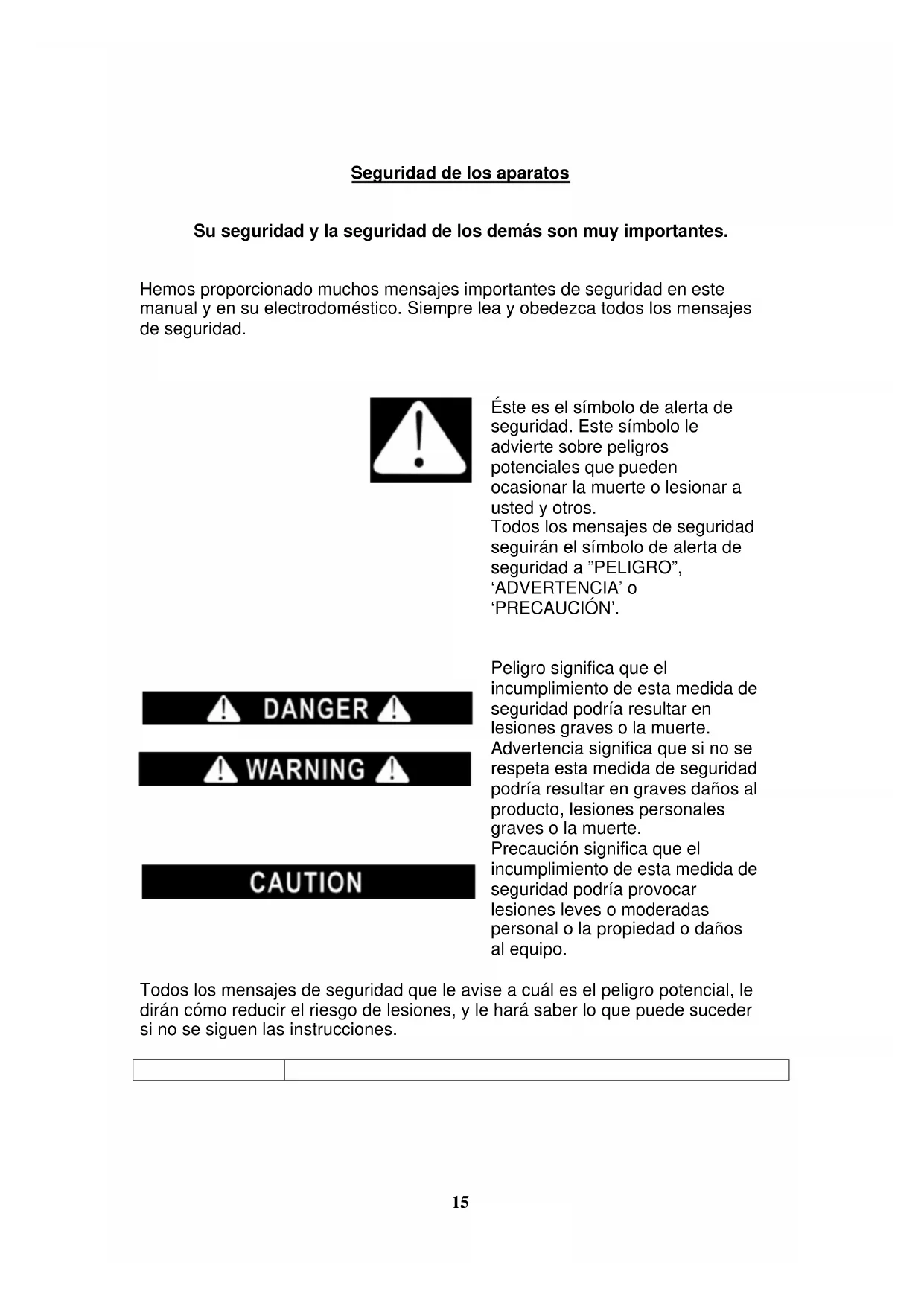 Éste es el símbolo de alerta de seguridad. Este símbolo le advierte sobre peligros potenciales que pueden ocasionar la muerte o lesionar a usted y otros. Todos los mensajes de seguridad seguirán el símbolo de alerta de seguridad a ”PELIGRO”, ‘ADVERTENCIA’ o ‘PRECAUCIÓN’.
