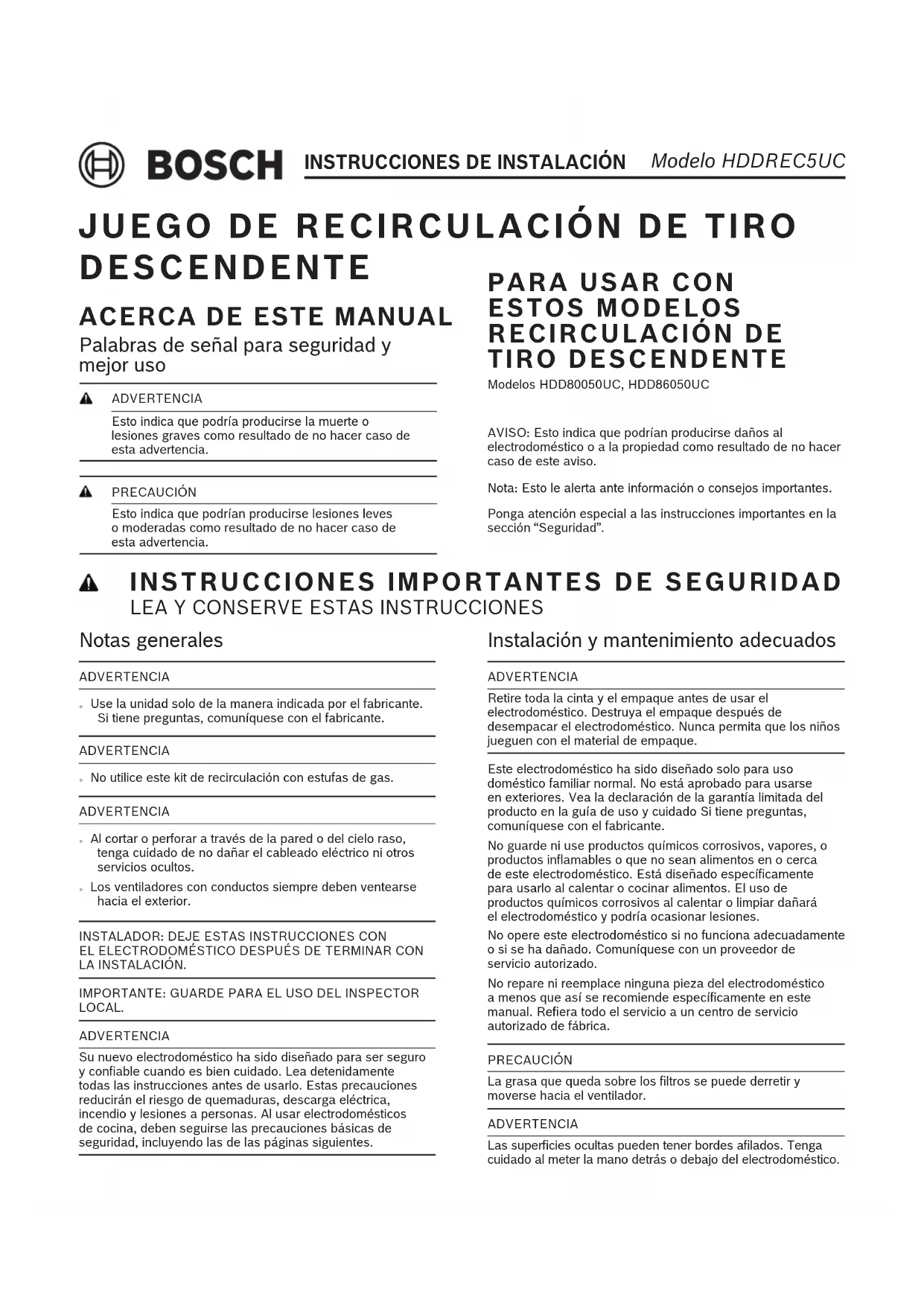 HDDREC5UC - Capucha BOSCH - Manual de uso y guía de instrucciones gratis