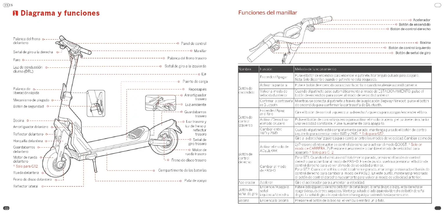 Ninebot GT1 - Scooter SEGWAY - Manual de uso y guía de instrucciones gratis