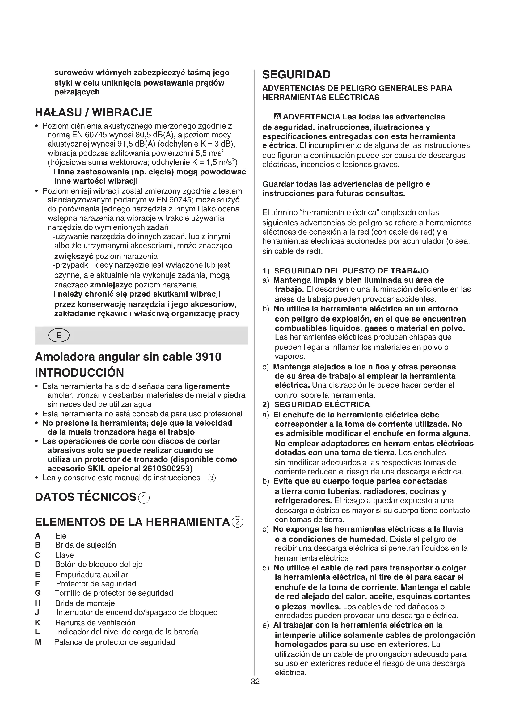 - Las operaciones de corte con discos de cortar abrasivos solo se puede realizar cuando se utiliza un protector de tronzado (disponible como accesorio SKIL opcional 2610S00253)