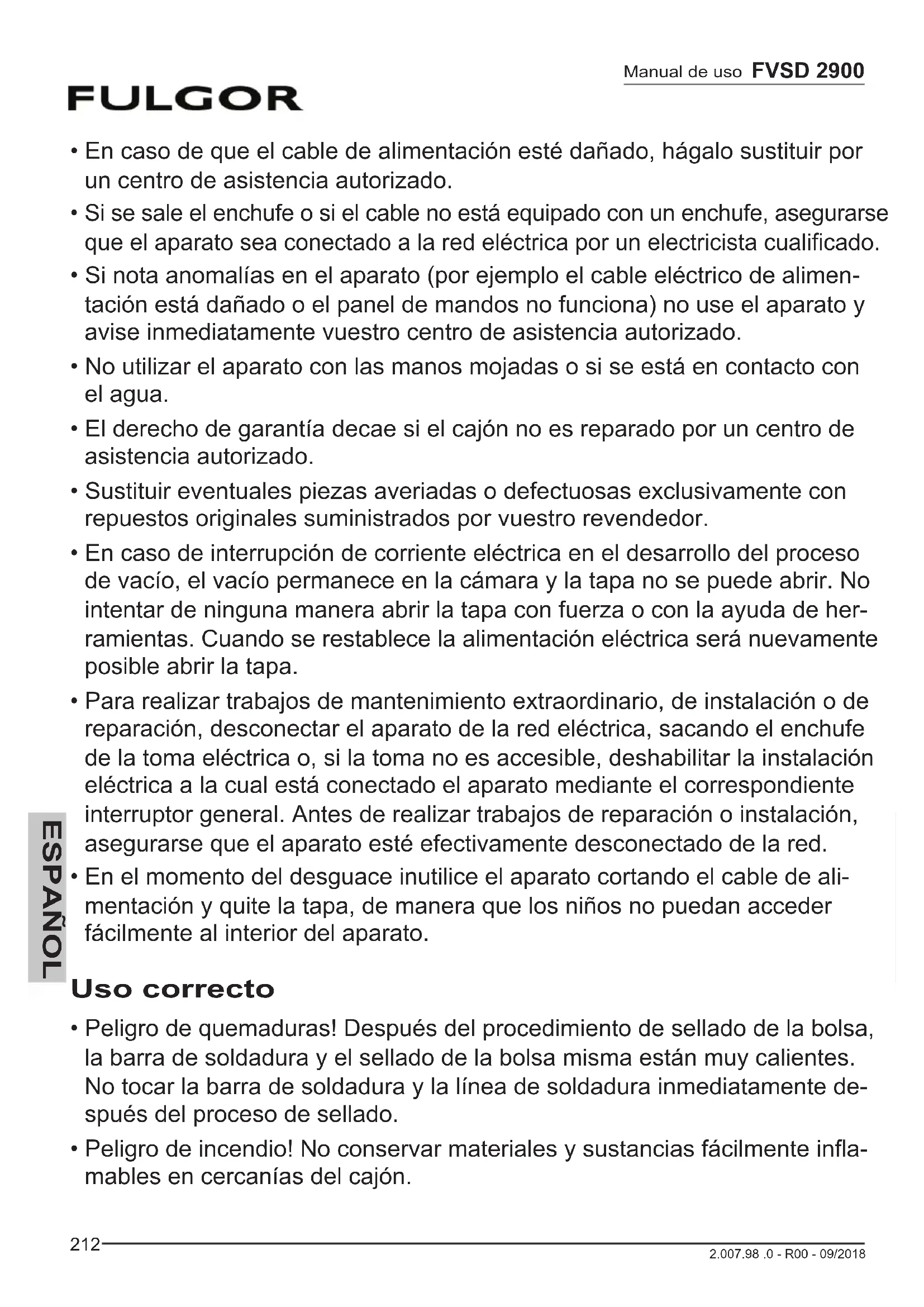 Manual de uso FVSD 2900 ESPAÑOL USO218