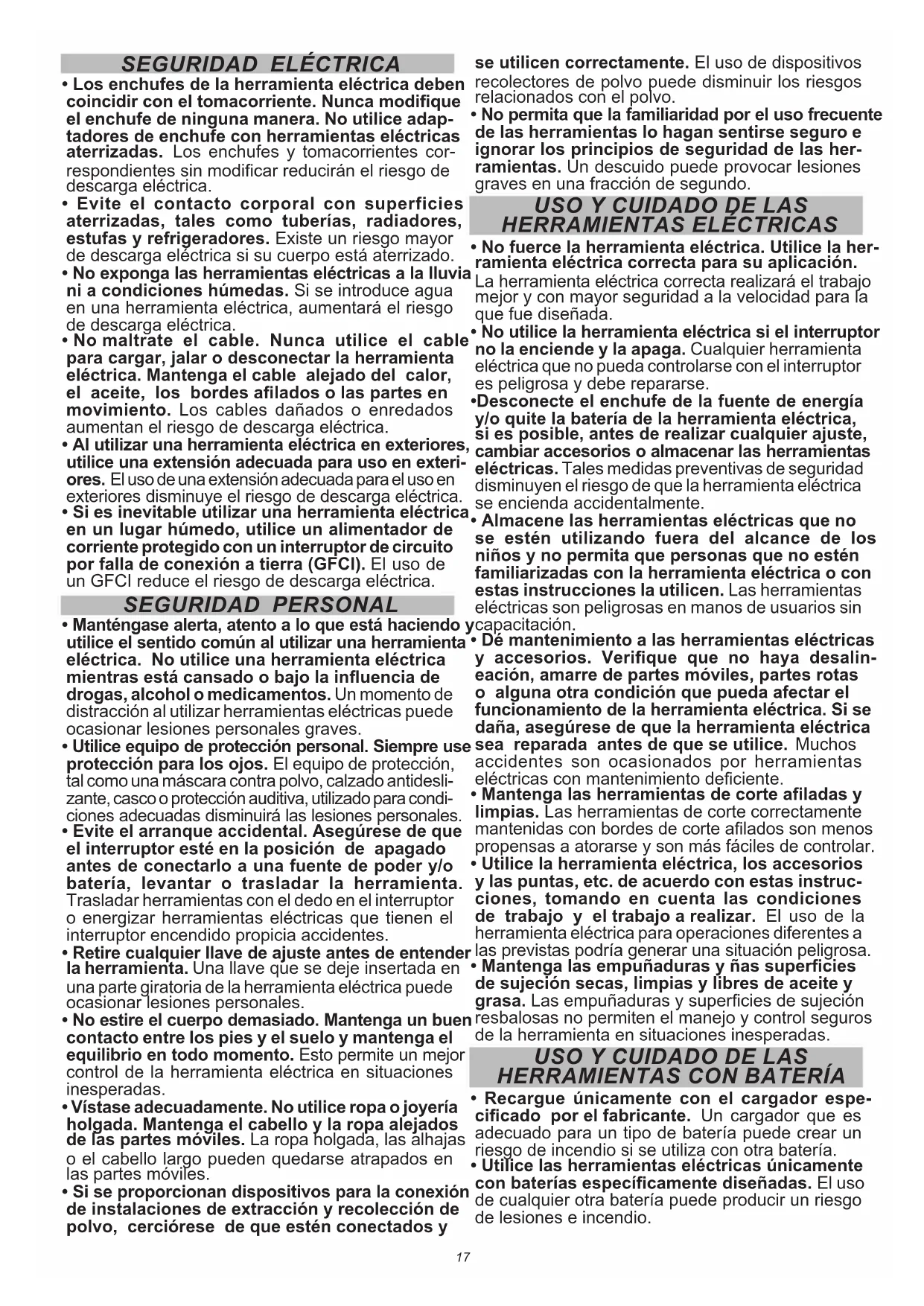 - Mantenga a los niños y a los espectadores ale- jados mientras utiliza una herramienta eléctrica. Las distracciones pueden ocasionar la pérdida de control.17