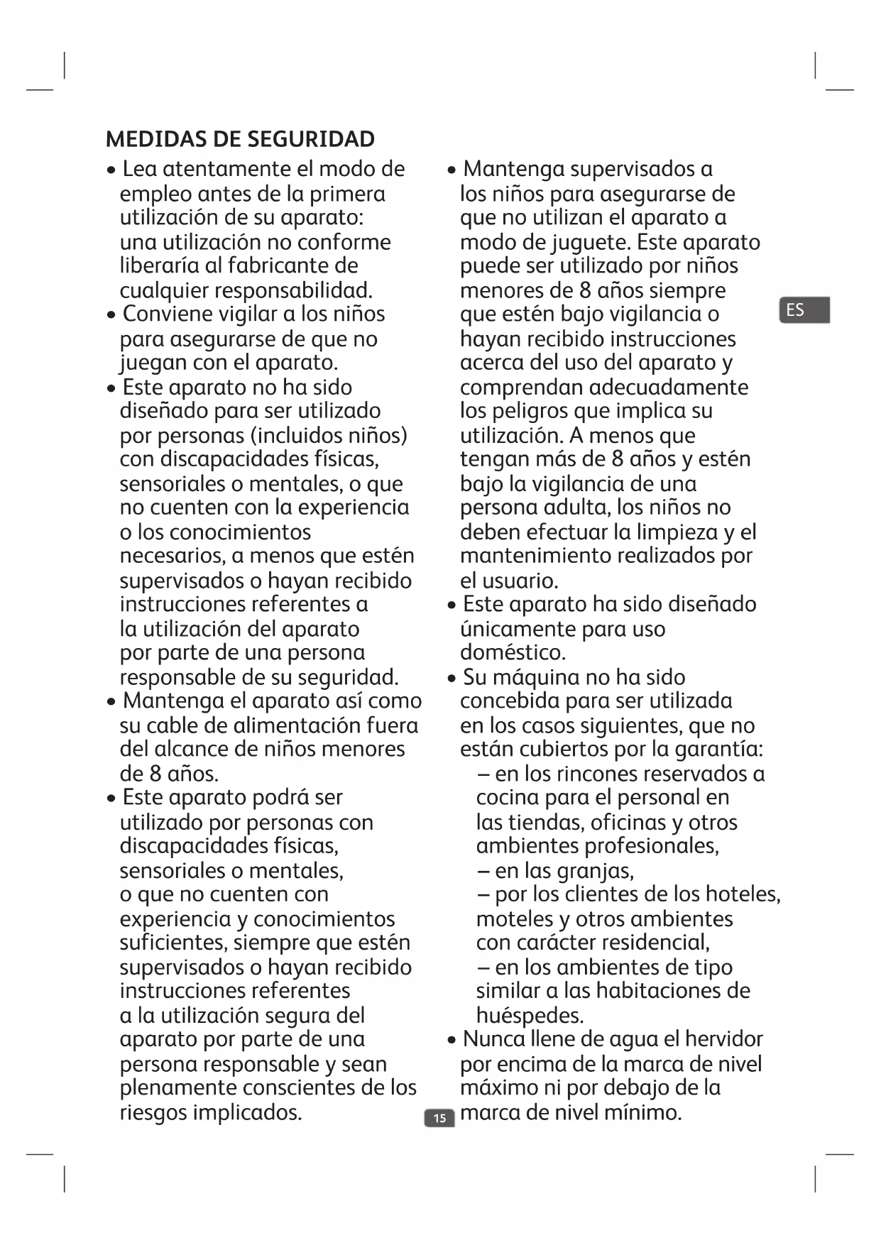 Para evitar cualquier accidente: no lleve en brazos a un niño o un bebé cuando beba o transporte una bebida caliente. ¡¡PARTICIPE EN LA CONSERVACIÓN DEL MEDIO AMBIENTE!! Su electrodoméstico contiene materiales recuperables y/o reciclables. Entréguelo al final de su vida útil, en un Centro de Recogida Específico o en uno de nuestros Servicios Oficiales Post Venta donde será tratado de forma adecuada. ES18