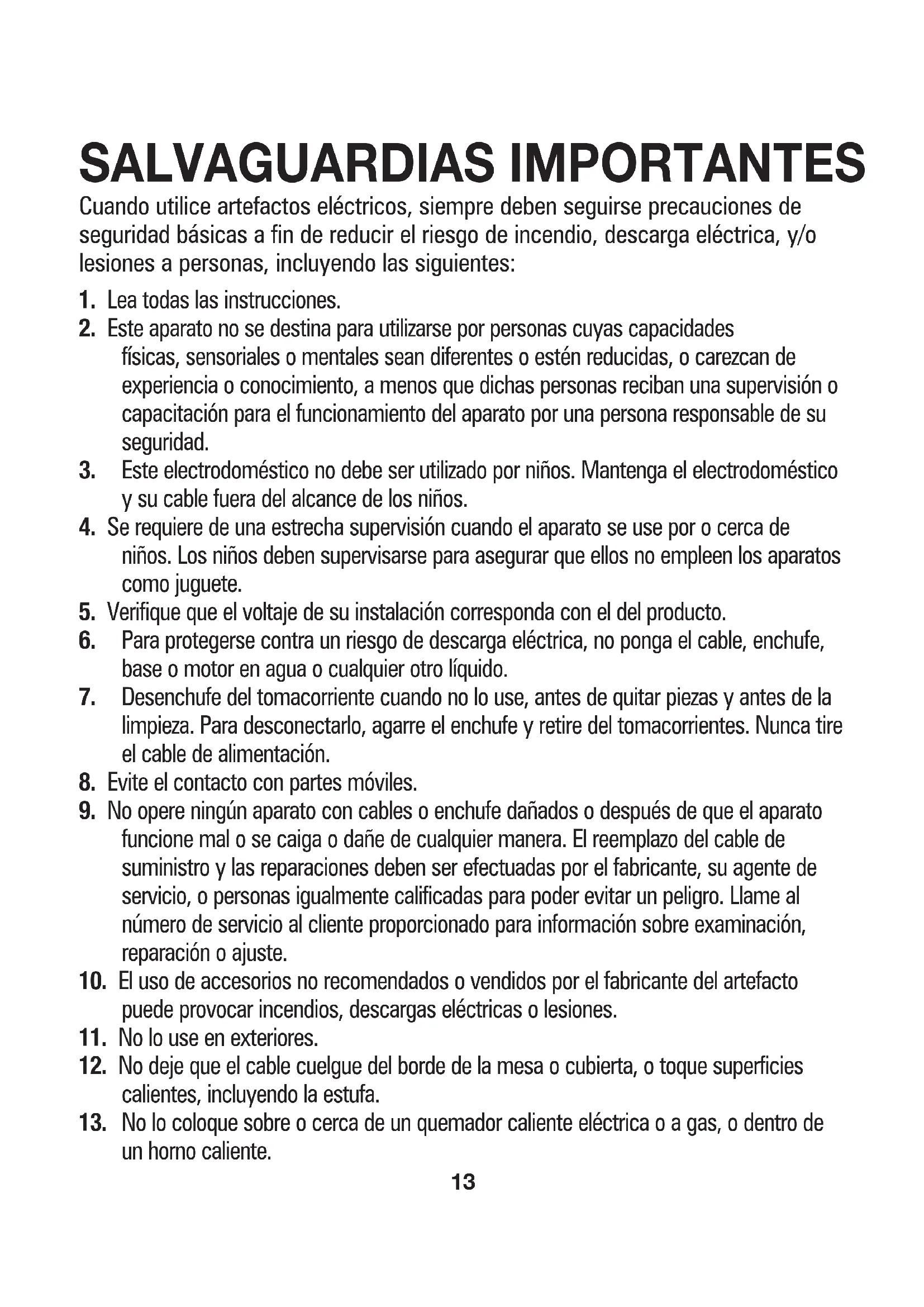 Cuando utilise artefactos electricos, siempre deben seguirse precauaciones de seguridad basics a fin de reducir el riesgo de incendio, descarga electrica, y/o lesiones a personas, incluyendo las siguientes: