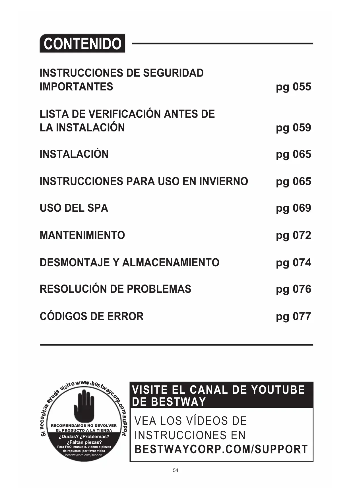 necesario.Para recibir asistencia, visite la sección de soporte de nuestro sitio web: www.bestwaycorp.com.