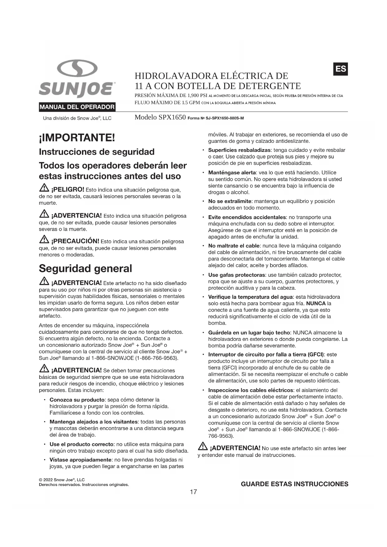 MANUAL DE USUARIO SPX1650 Sun Joe