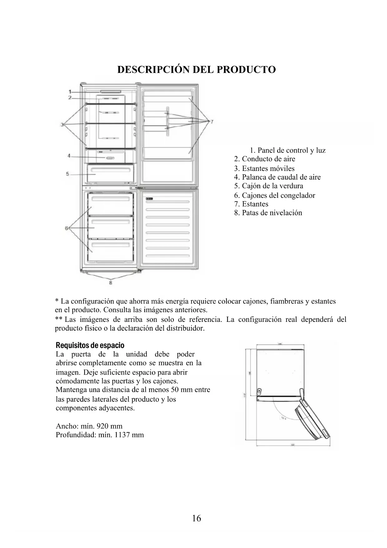 La configuración que ahora más energia requires colocar cajones, fiambreras y estantes en el producto. Consulta las imagenes anteriores.
