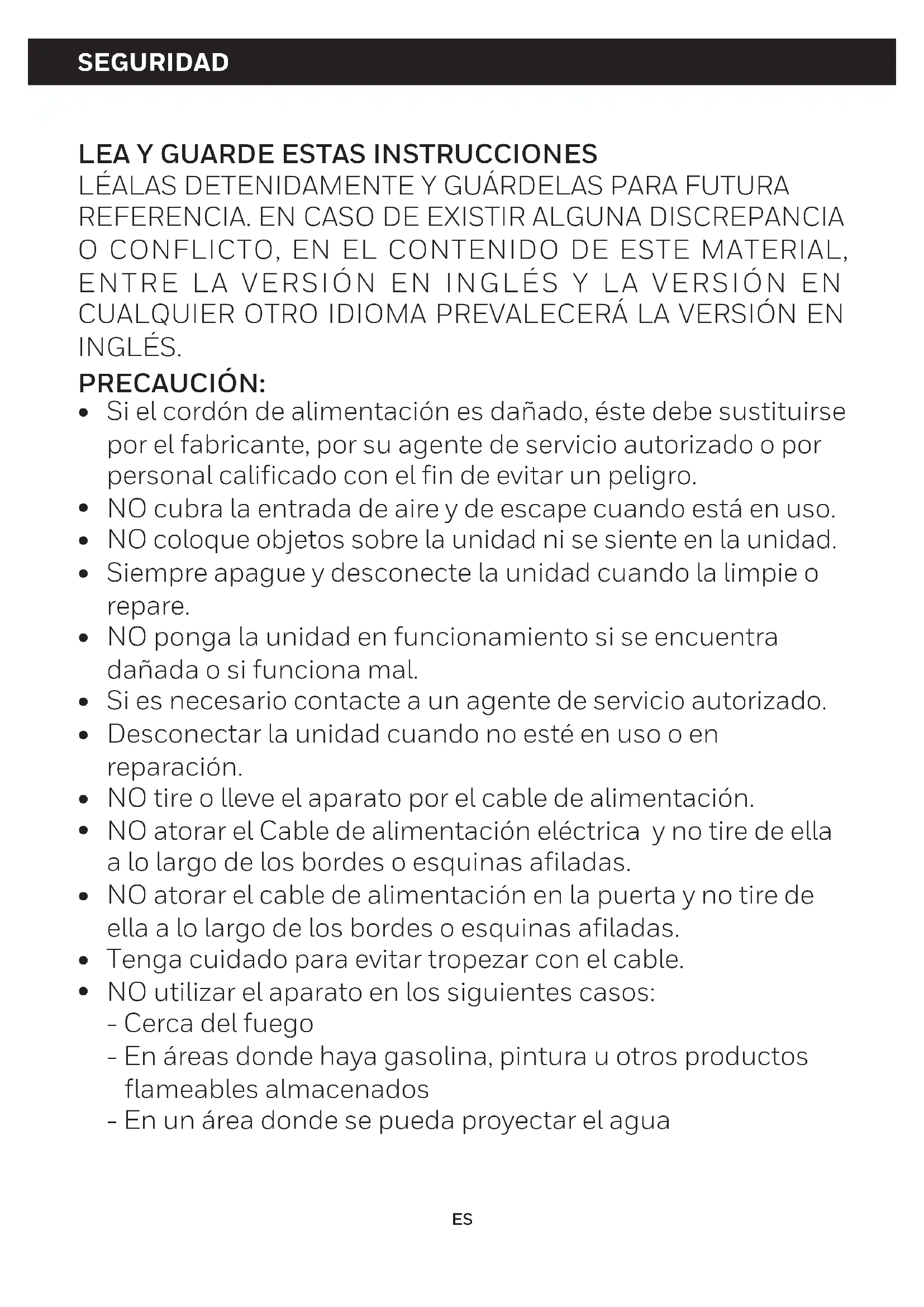 LÉALAS DETENIDAMENTE Y GUÁRDELAS PARA FUTURA REFERENCIA. EN CASO DE EXISTIR ALGUNA DISCREPANCIA O CONFLICTO, EN EL CONTENIDO DE ESTE MATERIAL, ENTRE LA VERSIÓN EN INGLÉS Y LA VERSIÓN EN CUALQUIER OTRO IDIOMA PREVALECERÁ LA VERSIÓN EN INGLÉS. PRECAUCIÓN: