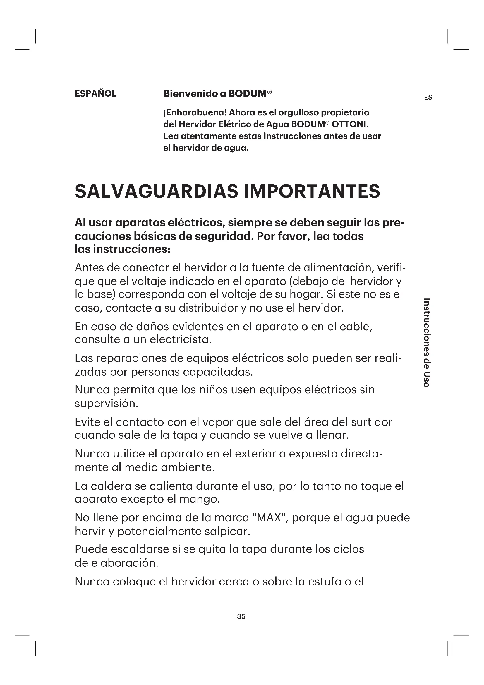 iEnhorabuena! Ahora es el orgulioso propietario del Hervidor Elétrico de Agua BODUM® OTTONI. Lea atentamente estas instrucciones antes de usar el hervidor de agua.