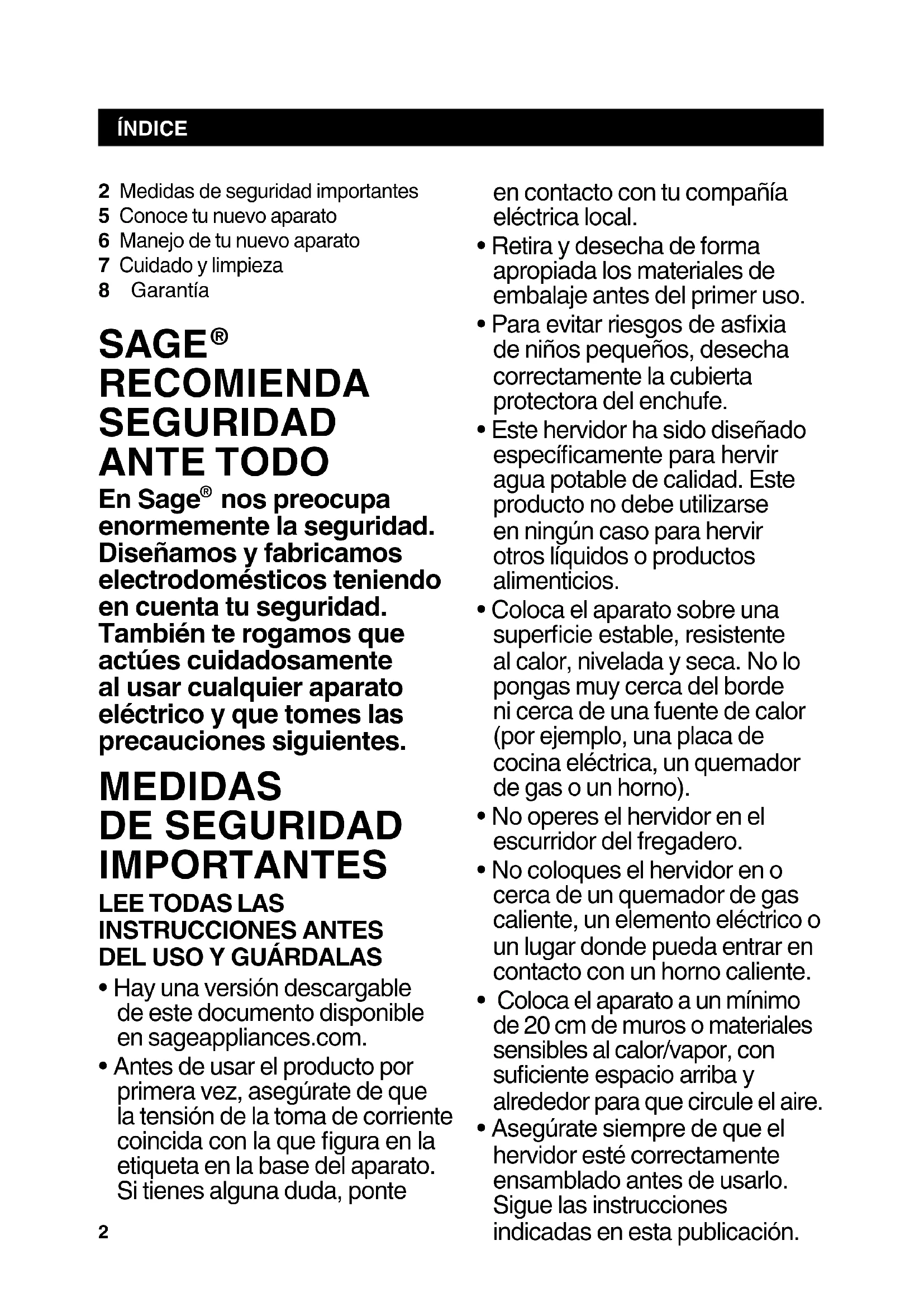 - Hay una versión descargable de este documento disponible en sageappliances.com.