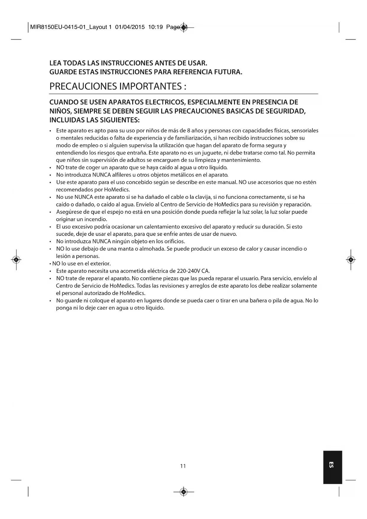 MIR8150EU - Espejo HOMEDICS - Manual de uso y guía de instrucciones gratis