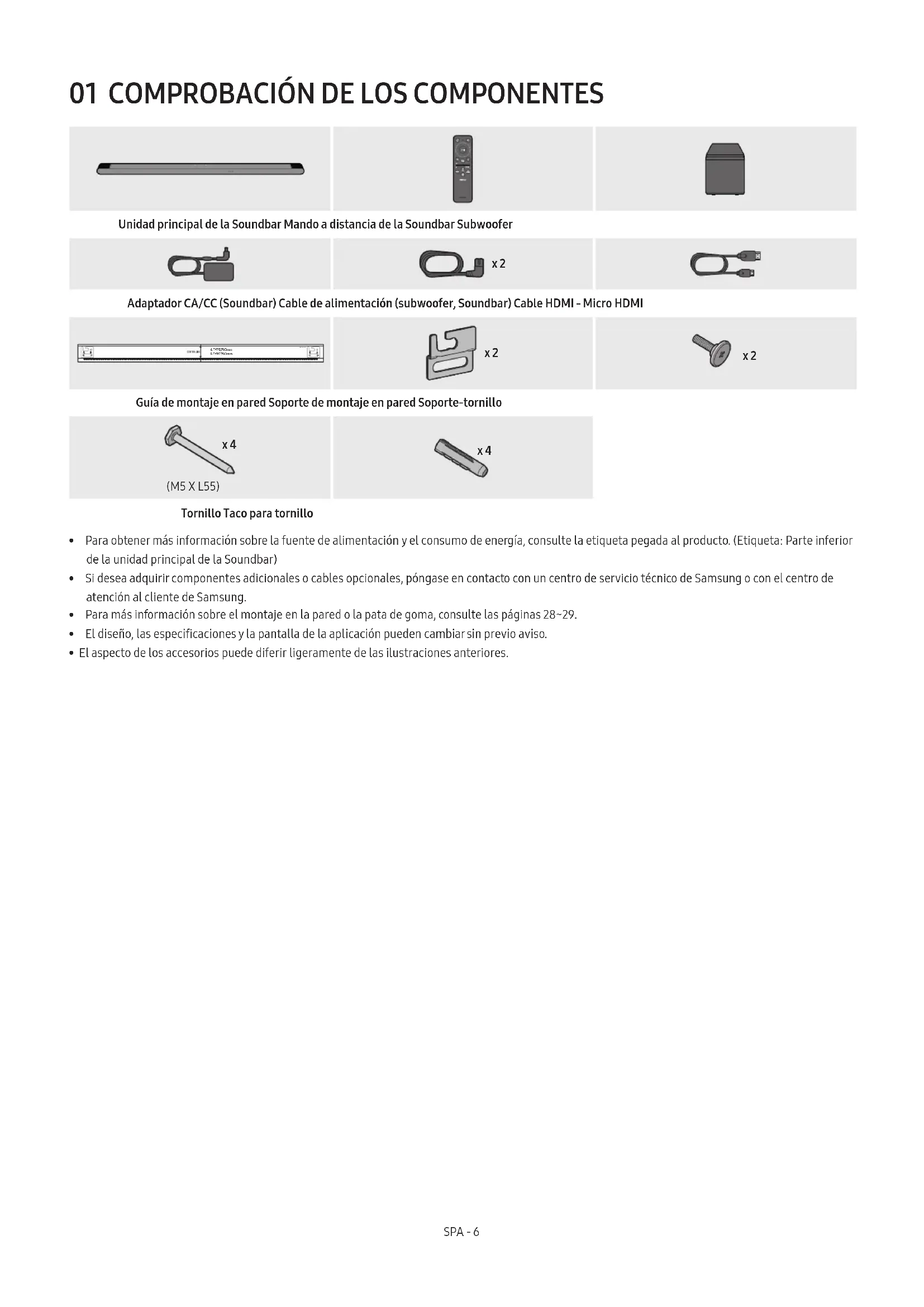 - El aspecto de los accesorios puede diferir ligeramente de las ilustraciones anteriores.SPA - 7