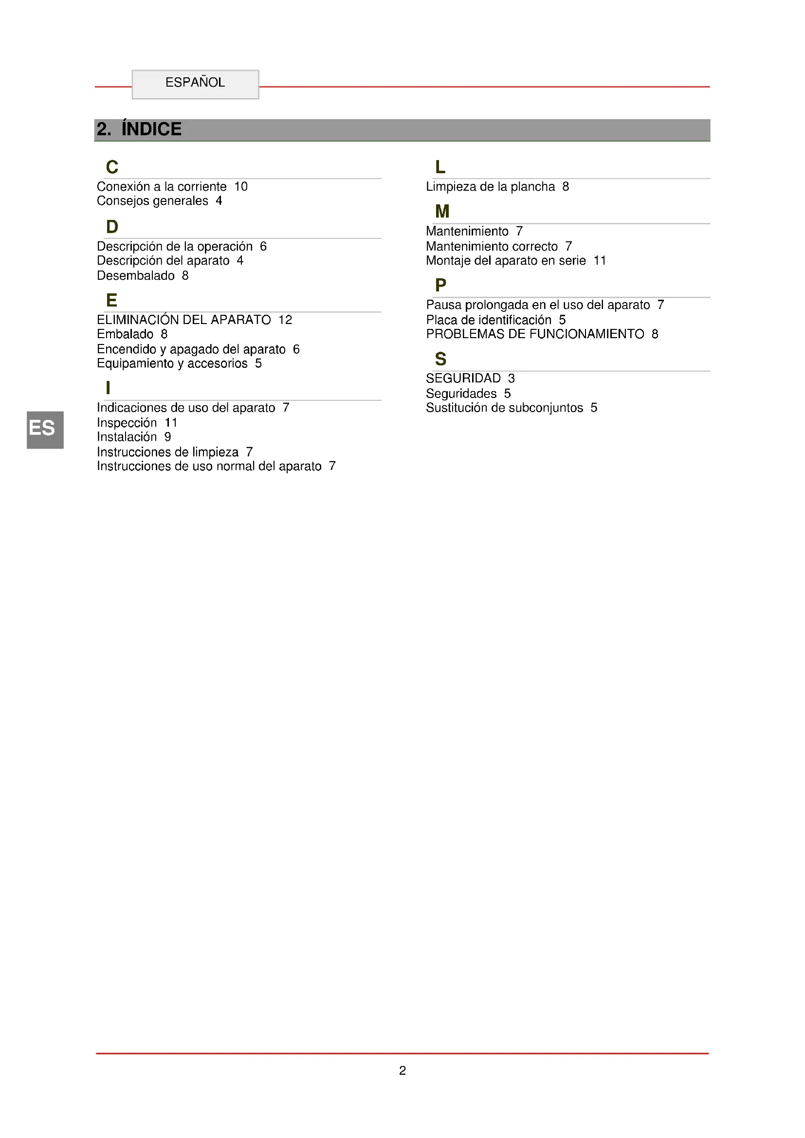 6.2. Mantenimiento correcto El mantenimiento adecuado incluye la limpieza diaria de todas las partes que están en contacto con los alimentos y el mantenimiento sistemático de los conductos de evacuación. El mantenimiento adecuado permite obtener el mejor rendimiento, la vida útil más larga del aparato y el funcionamiento correcto de los dispositivos de seguridad. Nunca dirija el chorro de agua ni la lavadora de alta presión hacia el aparato. Para limpiar las superficies de acero inoxidable no use lana de hierro ni cepillo de hierro, dado que podrán dejar partículas de hierro en la superficie del aparato que, debido a la oxidación, podrán causar la formación de herrumbre. Para remover restos secos use raspador de madera o de plástico o esponja blanda de limpieza. En caso de pausa prolongada en el uso del aparato, aplique vaselina en todas las partes de acero inoxidable y ventile el local con regularidad. No use agentes de limpieza que contengan sustancias peligrosas o nocivas para la salud (disolventes, gasolina, etc.). Al final de la jornada de trabajo efectúe la limpieza de: plancha aparato Con regularidad encomienda la ejecución de los siguientes trabajos de mantenimiento a los empleados especializados: control de funcionamiento de la instalación eléctrica; control de funcionamiento de los termostatos de seguridad.8 ESPAÑOL