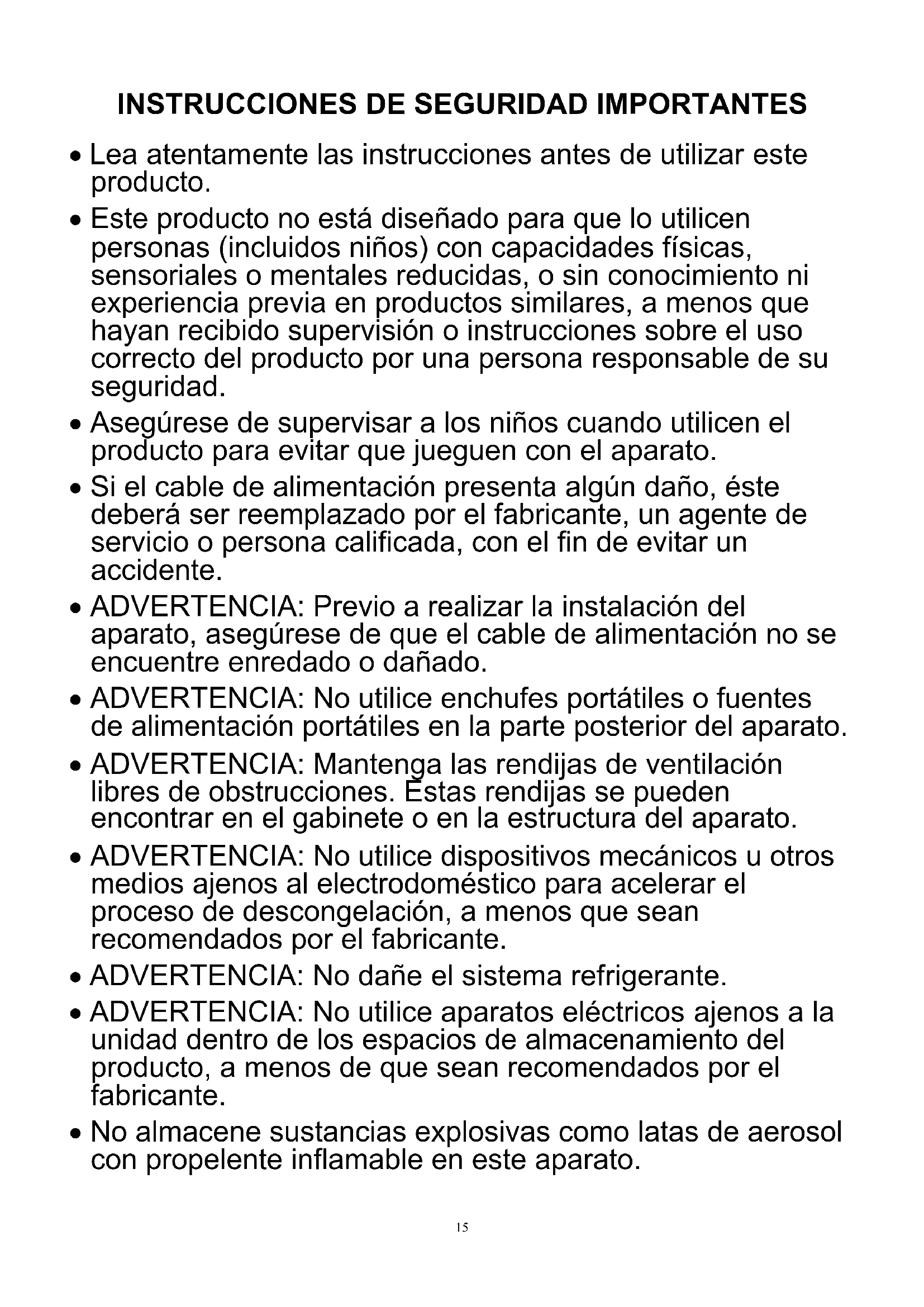 - ADVERTENCIA: No utilise aparatos electricos ajenos a la unidad dentro de los espacios de almacenimiento del producto, a menos de que Sean recomendados por el fabricante.