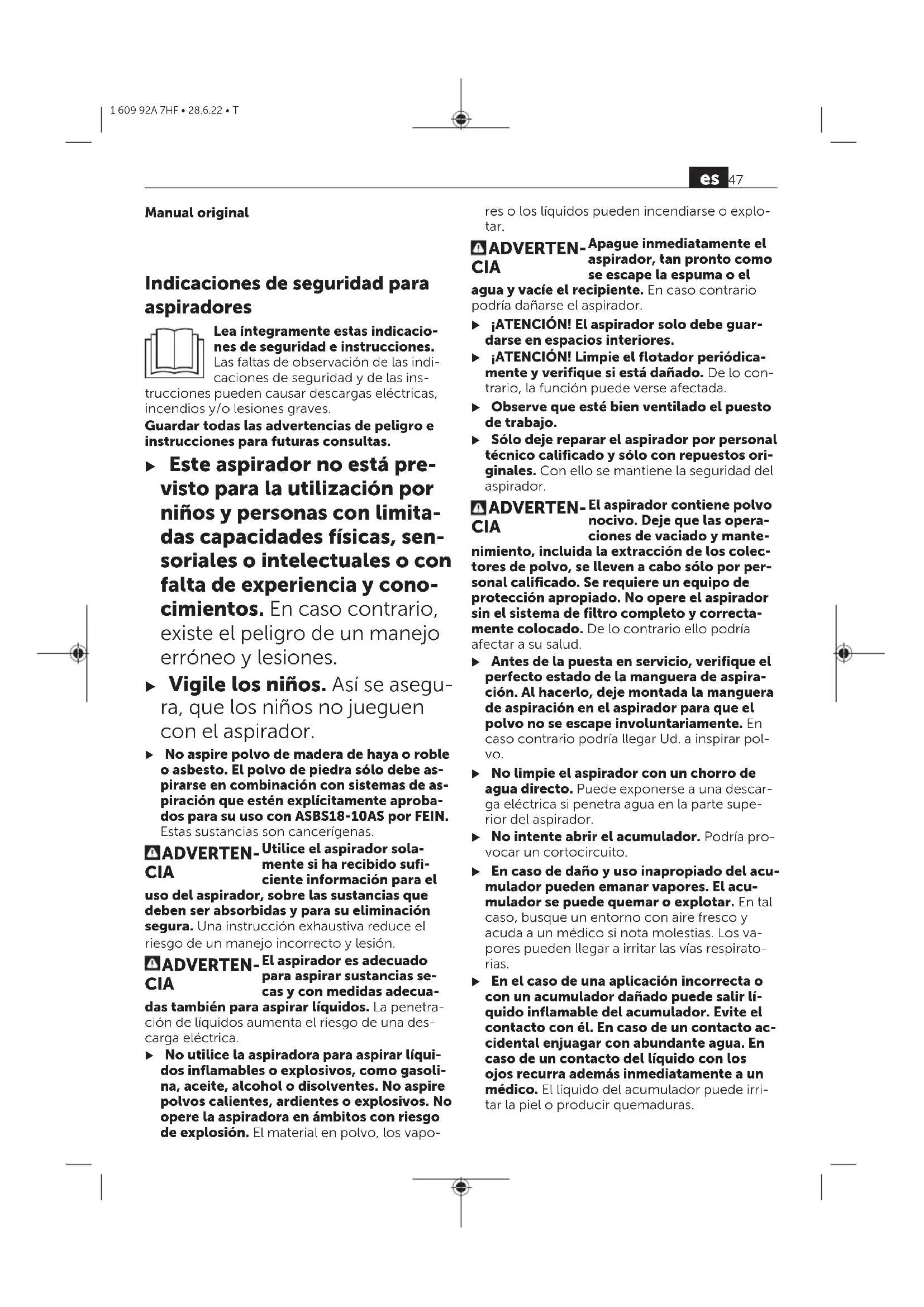ASBS 1810 AS - Aspiradora Fein - Manual de uso y guía de instrucciones gratis