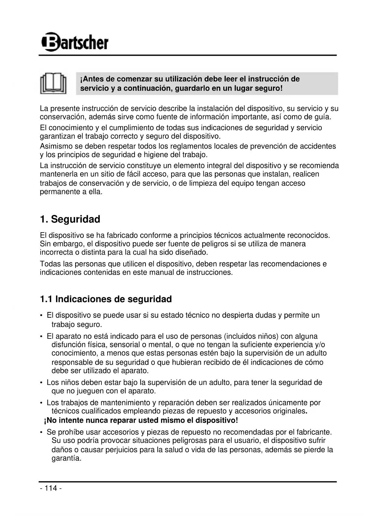 MANUAL DE USUARIO 1052103 BARTSCHER