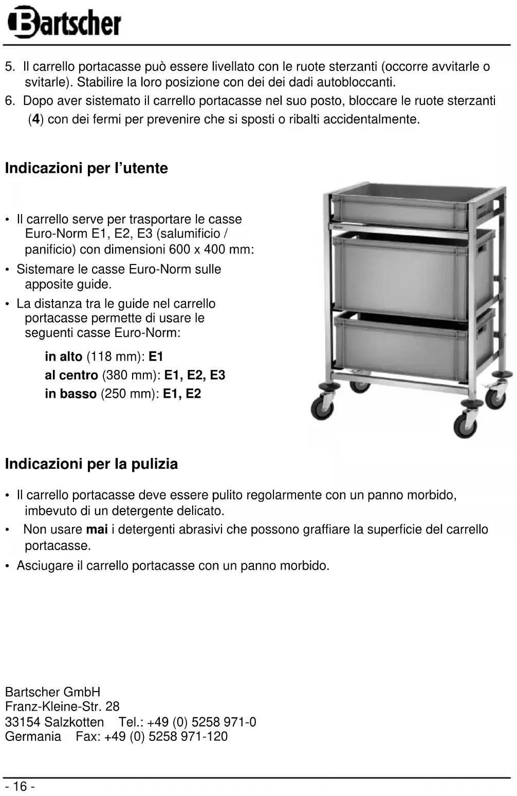 AK300 - Carro rodante BARTSCHER - Manual de uso y guía de instrucciones gratis