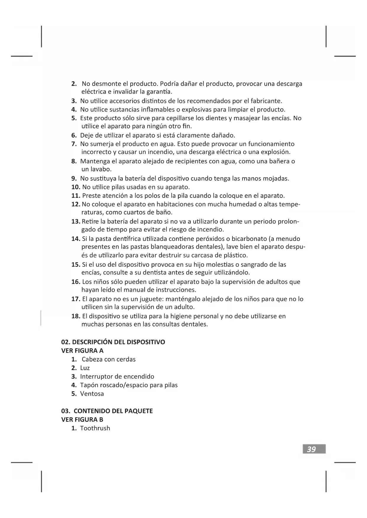 presentes en las pastas blanqueadoras dentales), lave bien el aparato despu- és de ulizarlo para evitar destruir su carcasa de plásco.