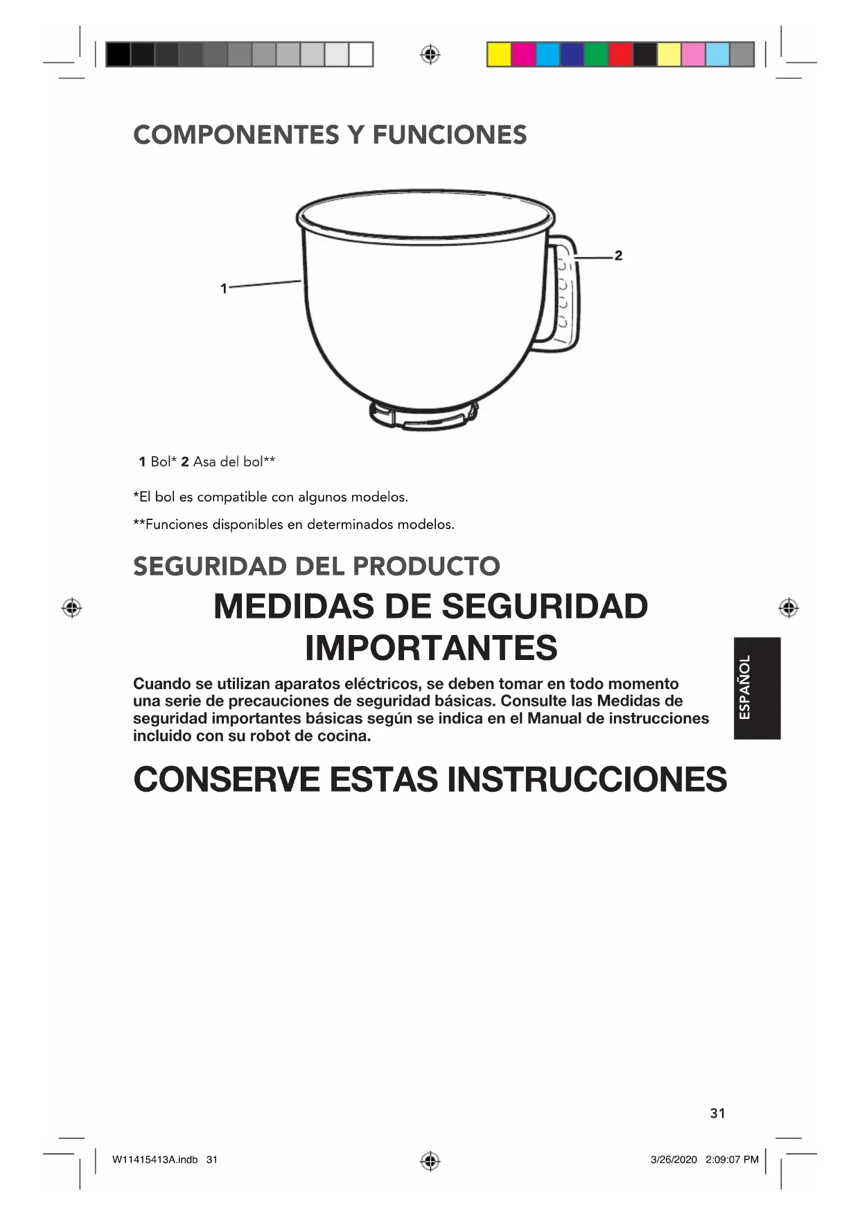 *El bol es compatible con algunos modelos. **Funciones disponibles en determinados modelos. 1 Bol* 2 Asa del bol**
