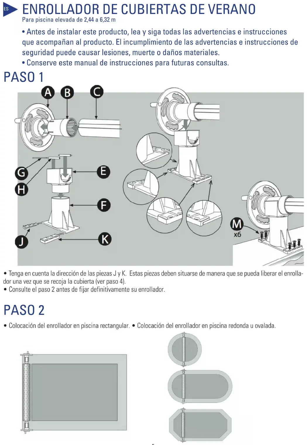 - Conserve este manual de instrucciones para futuras consultas. Para piscina elevada de 2,44 a 6,32 m PASO 1