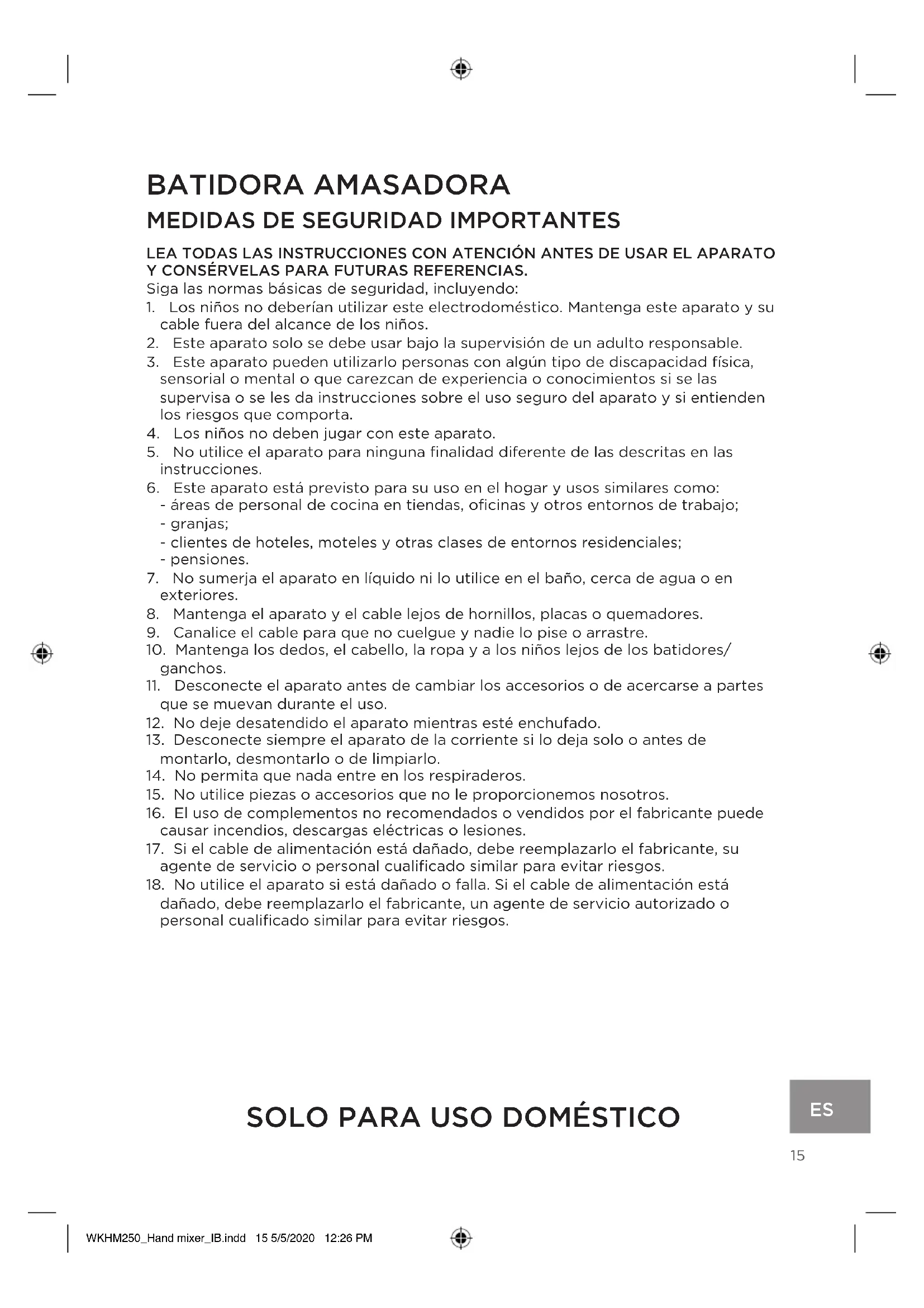 almacenamiento (12) para un almacenamiento fácil. WKHM250_Hand mixer_IB.indd 17 5/5/2020 12:26 PM18