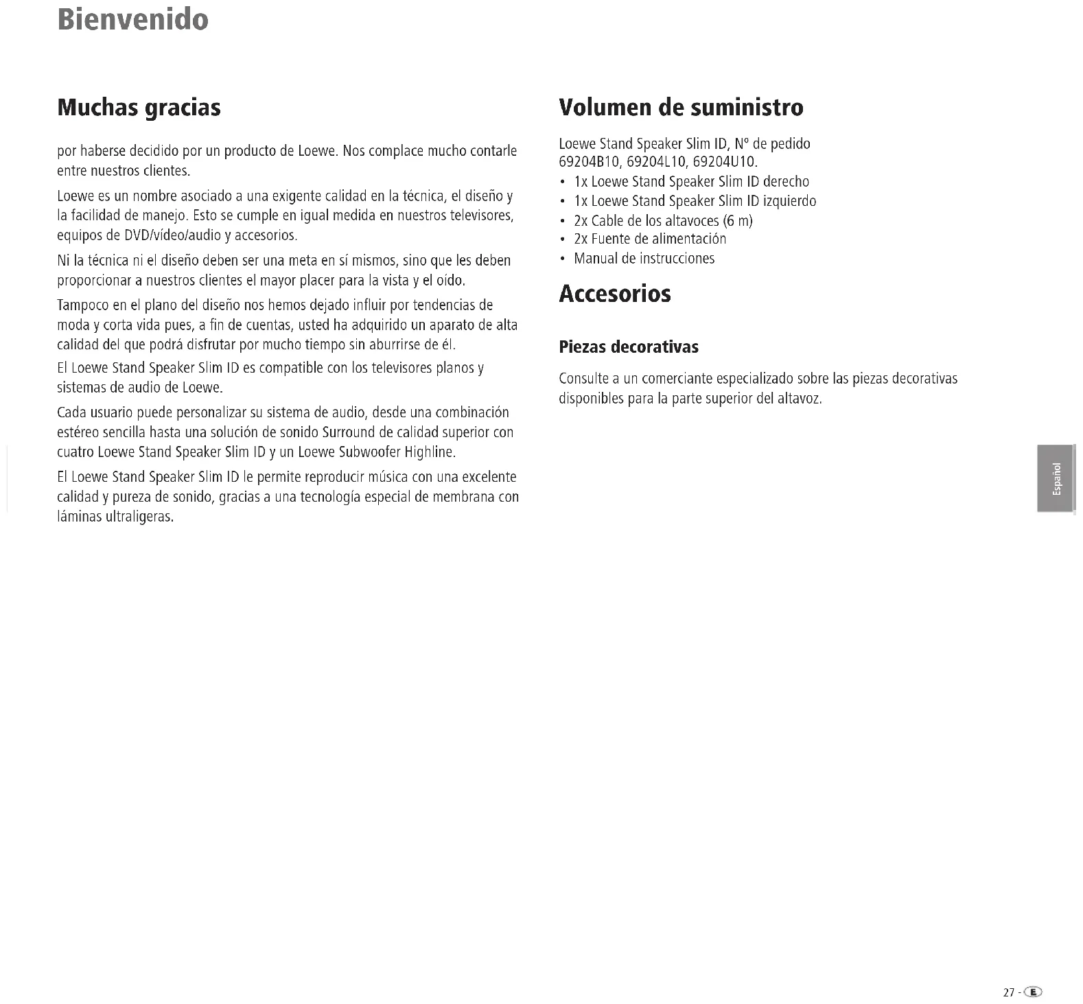 Encuentra gratis el manual del aparato Stand Speaker Slim ID LOEWE en formato PDF.